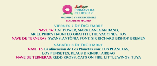 Os recordamos que el Primavera Club 2012 contará con gente de la talla de Cat Power, Swans, Mark Lanegan, Los Planetas y muchos más. Tenéis el cartel completo en este post anterior, y la distribución por días en estas dos imágenes: