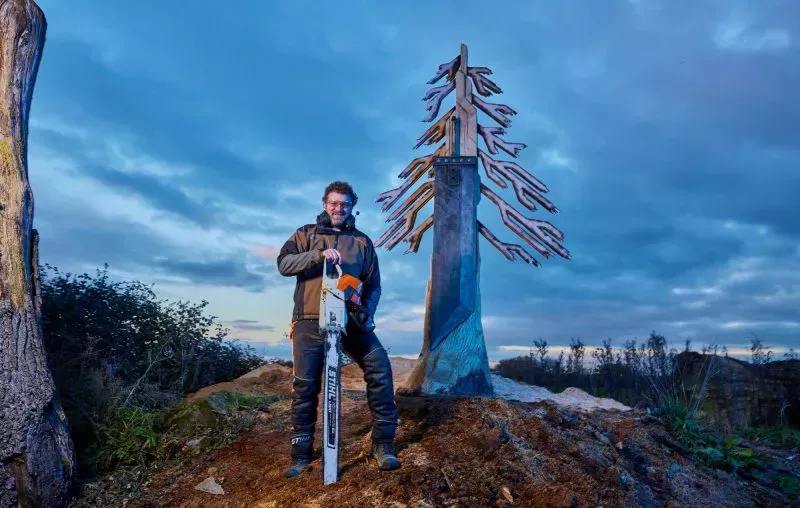 A continuación, O'Rourke insertó metal en el árbol para asegurarse de que algunas partes permanecieran intactas mientras trabajaba en los detalles más sutiles de la Buster Sword, antes de finalizar la obra de arte con un cincel y colorear el árbol.