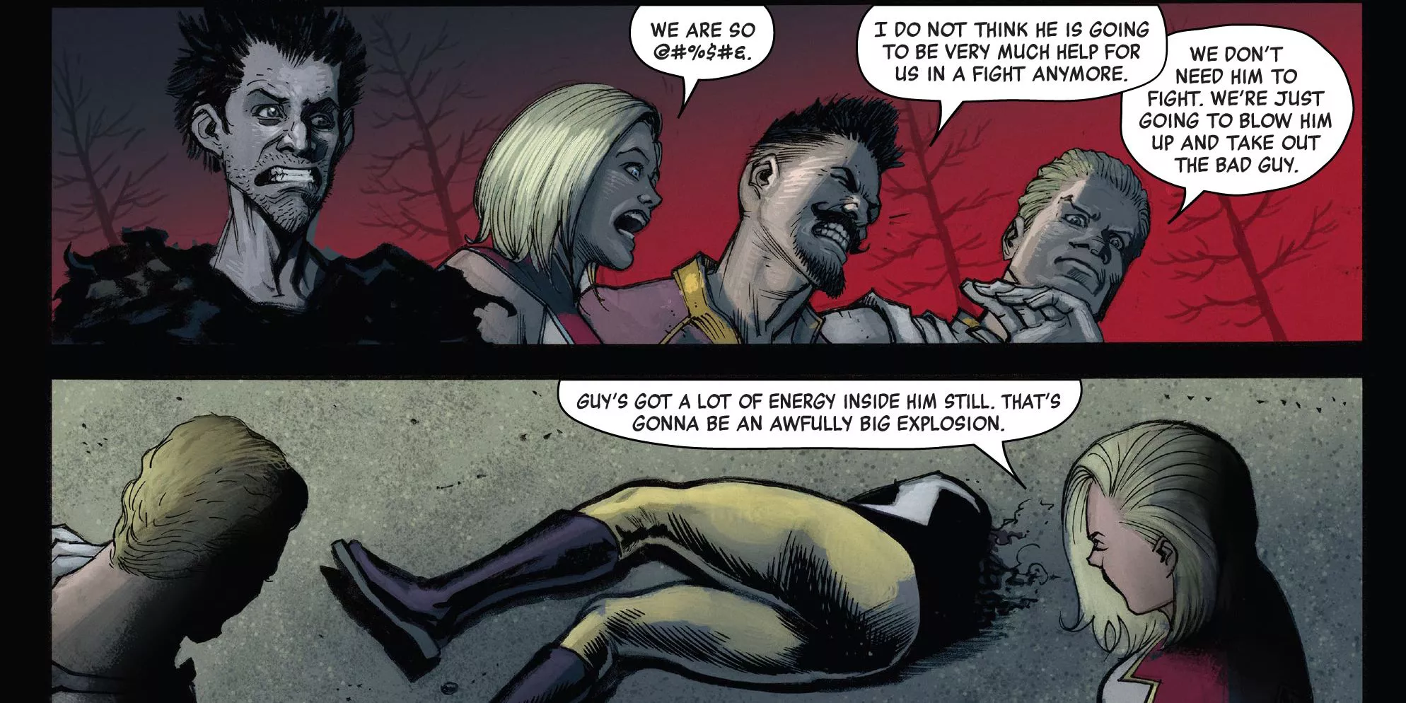 El Centinela era tan poderoso que la fuerza que dominaba no se disipó inmediatamente después de su muerte, dejando sus restos repletos de energía concentrada. Ahora, los Thunderbolts van a convertir eso en una bomba. Es una mala idea, no sólo por su horripilante naturaleza y su muy cuestionable eficacia, sino también porque los Thunderbolts no saben cómo sobrevivirían a ella, incluso si consiguieran llevarla a cabo.