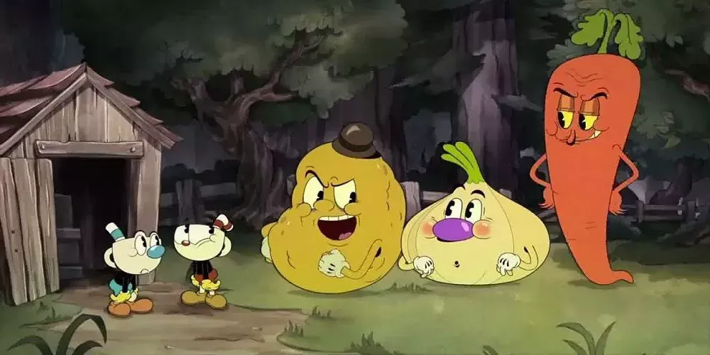 7 Cuphead y Mugman no cuidan las verduras de Elder Kettle en "Root Packed"