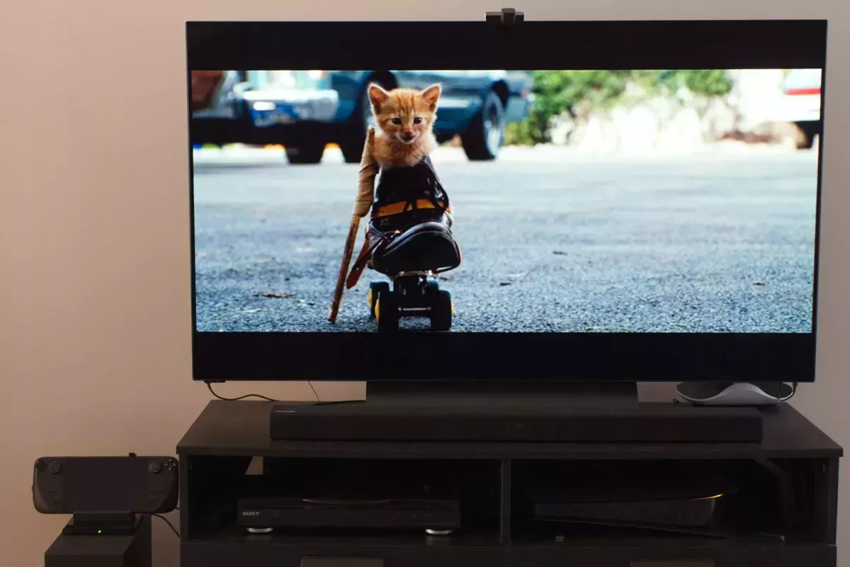 Al iniciarlo, se accede directamente a la interfaz de VLC, que ocupa todo el tamaño de mi televisor con su diseño utilitario al estilo de Windows 98. A partir de ahÃ, es bastante fácil si ya has utilizado el software antes. Si no, aprender cómo funciona no te costará mucho esfuerzo si ya has jugado con el modo de escritorio de Steam Deck.