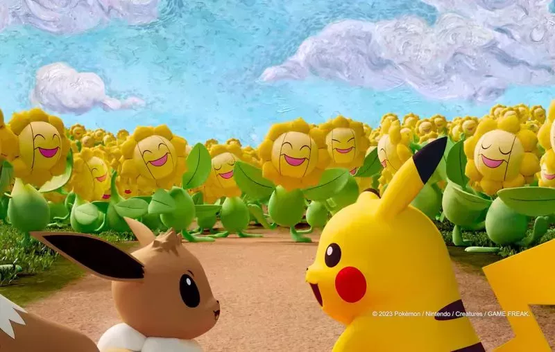 En el tráiler de anuncio, un Pikachu y un Eevee corretean por un campo de girasoles, con molinos de viento girando sobre una serie de colinas ondulantes al fondo. Una gota de pintura azul cae sobre la cabeza de Pikachu y el cielo se transforma en los remolinos postimpresionistas por los que es famoso el artista holandés. Descúbrelo a continuación: