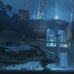 - Las anotaciones de Bethesda indican que esta imagen de arte conceptual también es de Nueva Atlántida.Imagen: Bethesda Game Studios/Bethesda Softworks