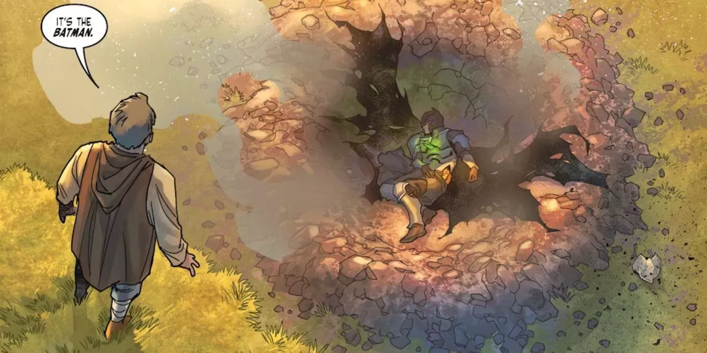 ¿Y quién se encuentra con Bruce mientras se desangra en el cráter formado por su impacto? Nada menos que Jonathan y Martha Kent, que hacen todo lo posible por curar al prÃncipe caÃdo antes de llevarlo en una carreta a su granja. Aunque es un gran cliffhanger para terminar el quinto número de la serie, también es un ejemplo de lo que mejor hace Dark Knights of Steel: jugar con los patrones. Es probable que casi todos los que lean el libro conozcan la historia de la humilde familia Kent cuidando de un kriptoniano caÃdo del cielo. Taylor subvierte esta expectativa al principio, dejando que los padres de Kal-El vivan y lo crÃen como si fuera suyo.