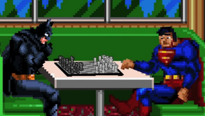 Por otro lado, hay muchas personas que consideran la película excesivamente violenta. Yo no, claro, yo busco espectáculo e incluso echo en falta algo más de violencia; Superman podría haberle reventado la cabeza a ese multimillonario fascista en cualquier momento, ¿por qué no lo hizo? En fin, el caso es que para satisfacer a los espectadores más cándidos, los chicos de Dorkly han realizado un vídeo con un “versus” alternativo donde podéis encontrar a Batman y Superman… jugando al ajedrez, por ejemplo. No hay nada menos violento que el ajedrez. A no ser que te pille en un mal, seas una máquina diseñada por Skynet y decidas declarar la guerra a la humanidad porque Kasparov lleva más de veinte minutos pensando su próximo movimiento.