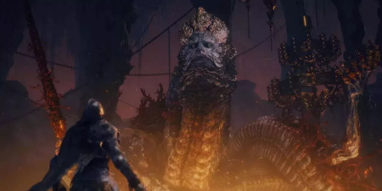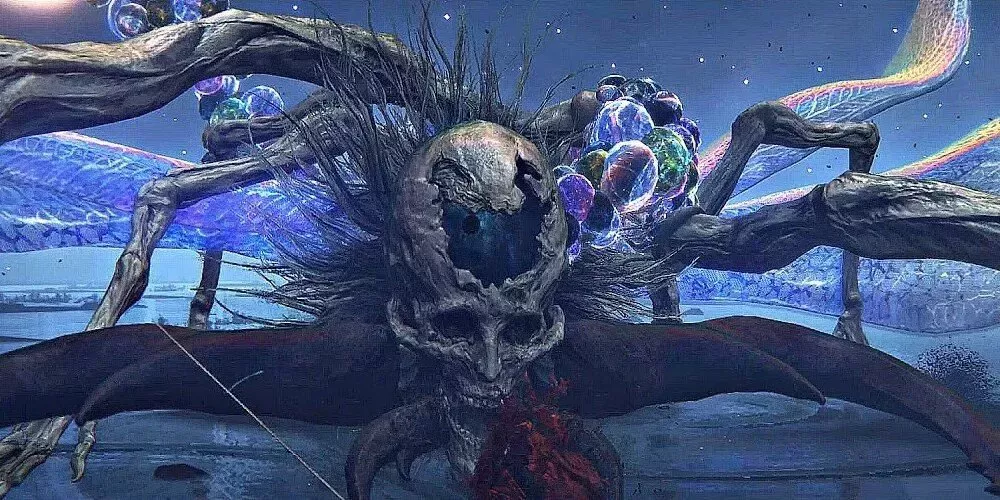 El jefe Serpiente Devoradora de Dios parece ser lo suficientemente aterrador, siendo una gran serpiente monstruosa con movimientos desconcertantes y embestidas repentinas y todo eso, pero es la segunda fase la que muestra el verdadero horror de este jefe.