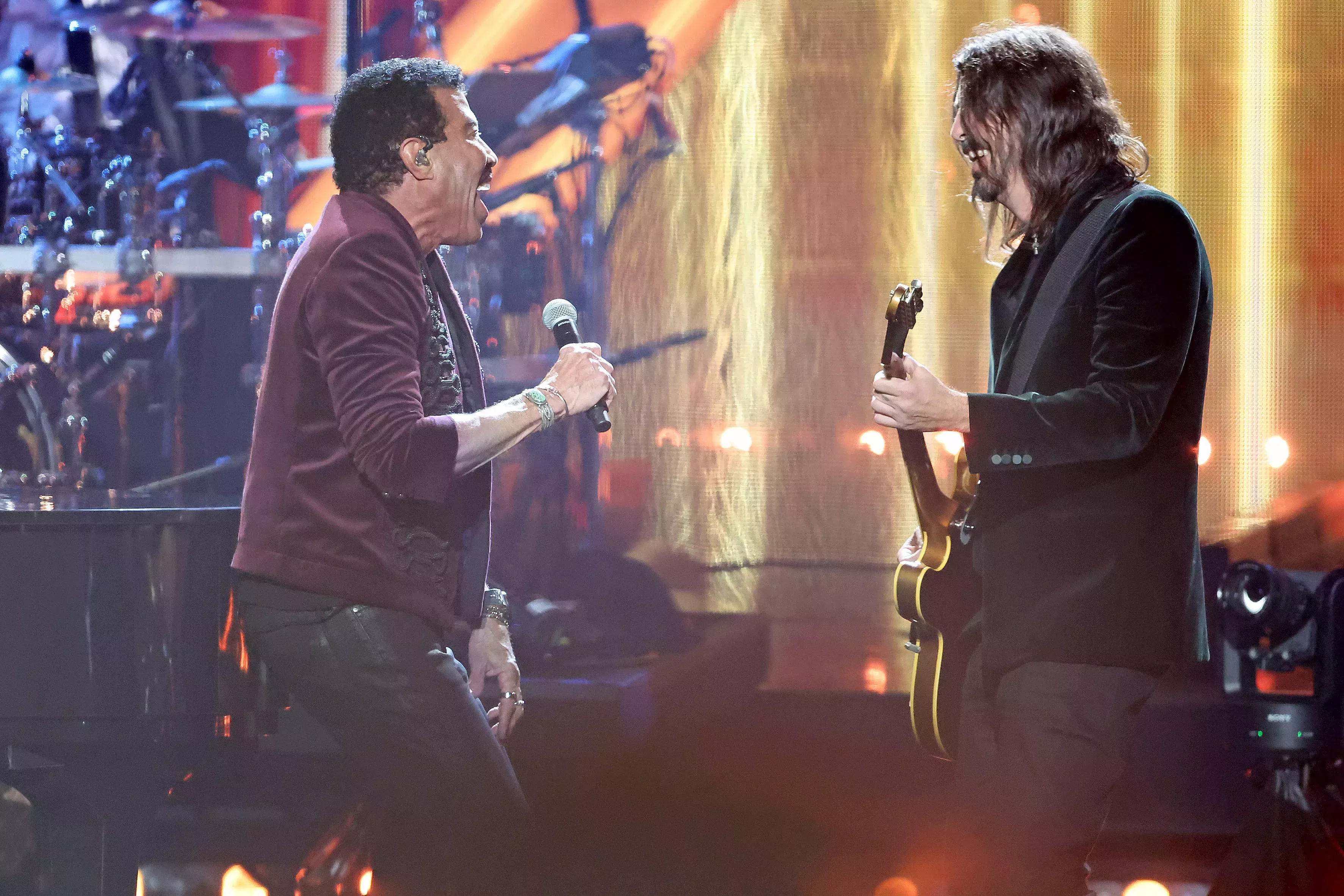 La clase del Salón del Rock de este año contó con algunos candidatos poco ortodoxos: Dolly Parton rechazó inicialmente la invitación, y Lionel Richie no es definitivamente la primera persona que viene a la mente cuando uno piensa en el rock and roll. Sin embargo, los organizadores pulieron su decisión haciendo que Lenny Kravitz -que llevaba lo que parecía ser un vestido dorado- lo indujera, y haciendo que Dave Grohl se uniera a él en el escenario como guitarrista principal en "Easy"."La actuación de Richie y su homenaje estuvieron llenos de una energía tan positiva como muchas de sus canciones: "El rock and roll no es un color", dijo, "es un sentimiento. Es una vibración. Y si dejamos que esa vibración llegue, esta sala crecerá" - digamos que Grohl es uno de los mejores bateristas de la historia del rock, un fuerte compositor y cantante de rock y un decente guitarrista rítmico, pero ese solo... yeesh.