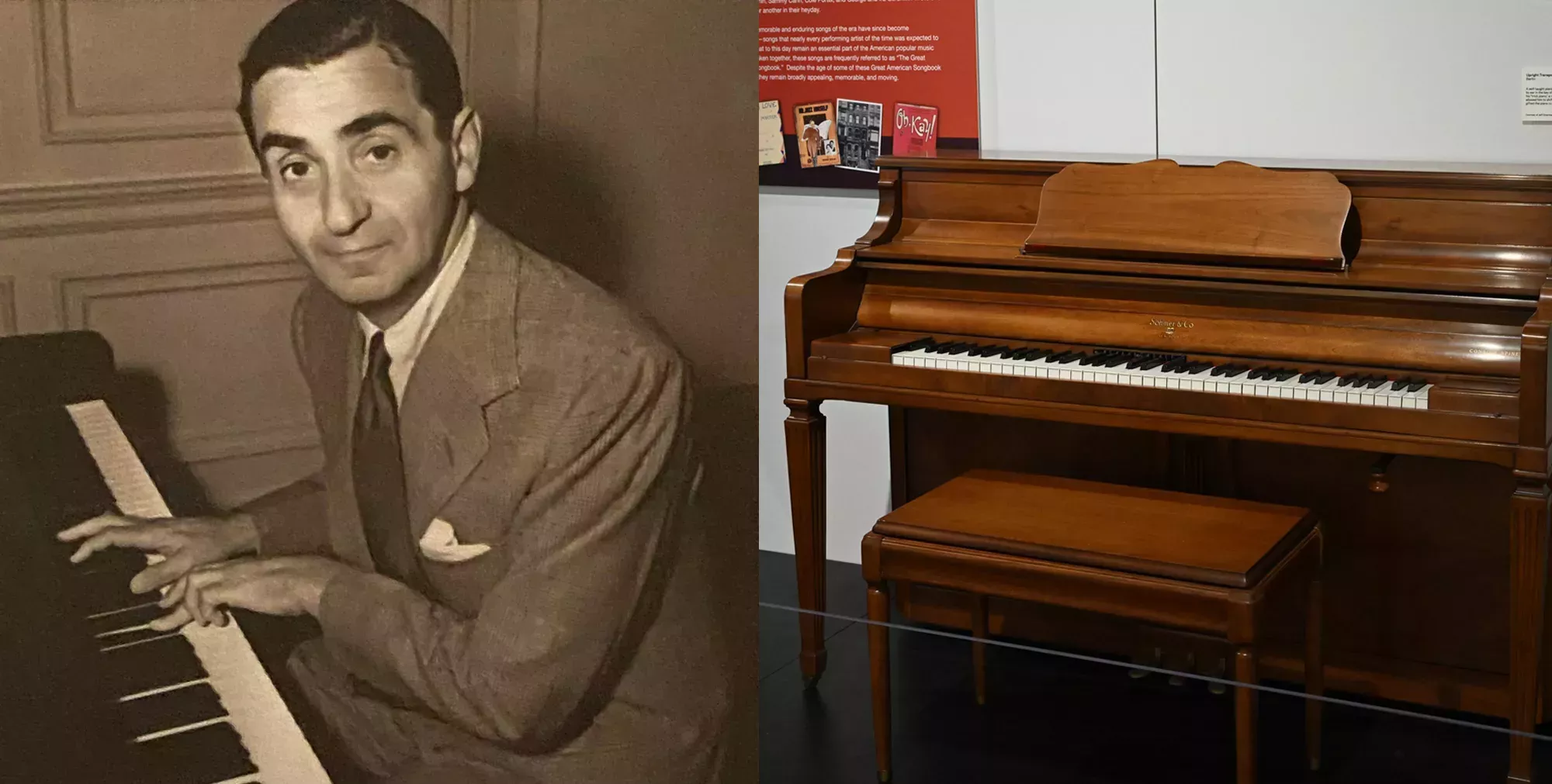 En realidad, éste es uno de los dos pianos que Irving Berlin llamaba "pianos trucados"", explica la comisaria, señalando lo primero que ven los visitantes al entrar en la sala. Era autodidacta; la teoría musical no era su fuerte. Prefería tocar las teclas negras, y de hecho el fa sostenido era su favorito. Así que mandó hacer este piano en el que podía pisar el pedal central y luego usar ese mecanismo para cambiar a otras teclas, porque hacerlo por su cuenta no le resultaba fácil". Ahora es propiedad de un prestamista local, y es estupendo poder tener una de sus piezas".
