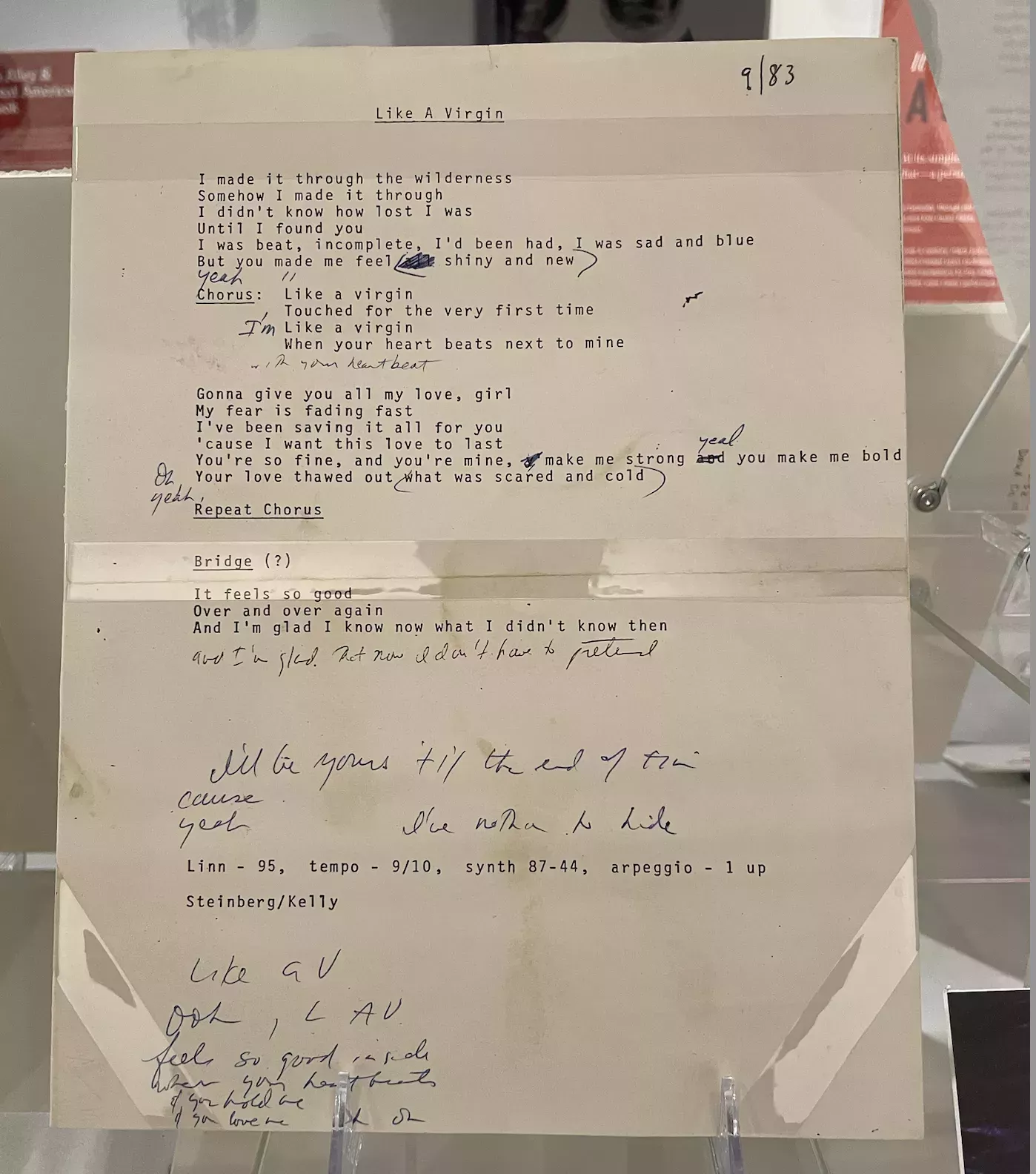 A Emmons le gusta especialmente tener algunas de las letras manuscritas con líneas tachadas que indican ediciones en tiempo real: "Siempre preferimos que haya cierta sensación de proceso, para que la gente no tenga la sensación de que acaban de nacer". Entre las letras o partituras expuestas hay borradores de "Fly