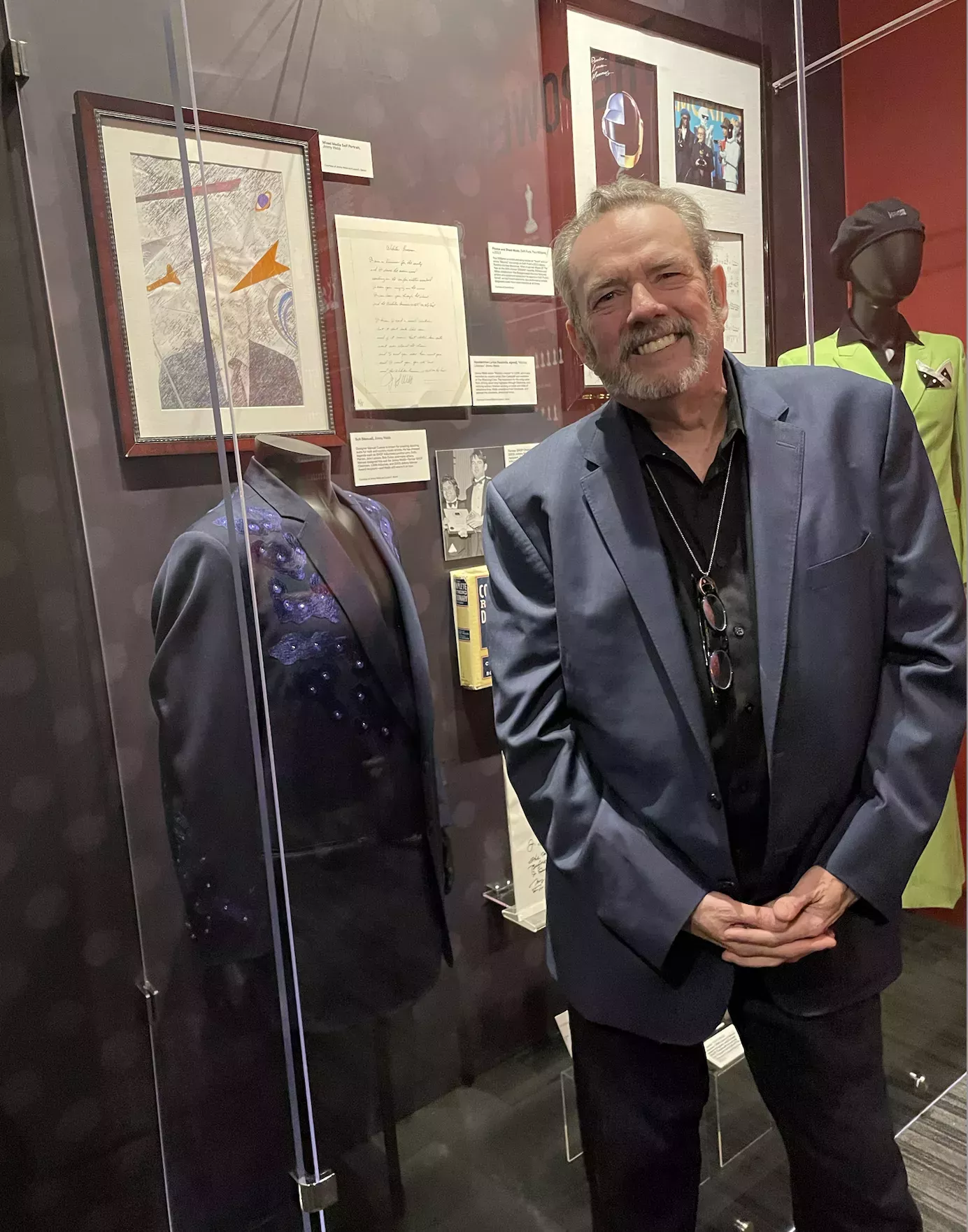 En un reciente preestreno, Jimmy Webb pudo echar un vistazo a sus propios objetos expuestos, que van desde la letra manuscrita del éxito de Glen Campbell "Wichita Lineman" -que al menos unos cuantos estudiosos de la historia del pop afirmarán que es la mejor canción jamás escrita, o casi- hasta una chaqueta que llevaba en los años sesenta. "Manuel (del local Nudie's, antes de que se estableciera por su cuenta en Nashville) solía hacer toda la ropa para Glen, así que solía envidiar toda la ropa de Glen. Así que es una especie de símbolo de mi fascinación por ese esplendor sartorial".