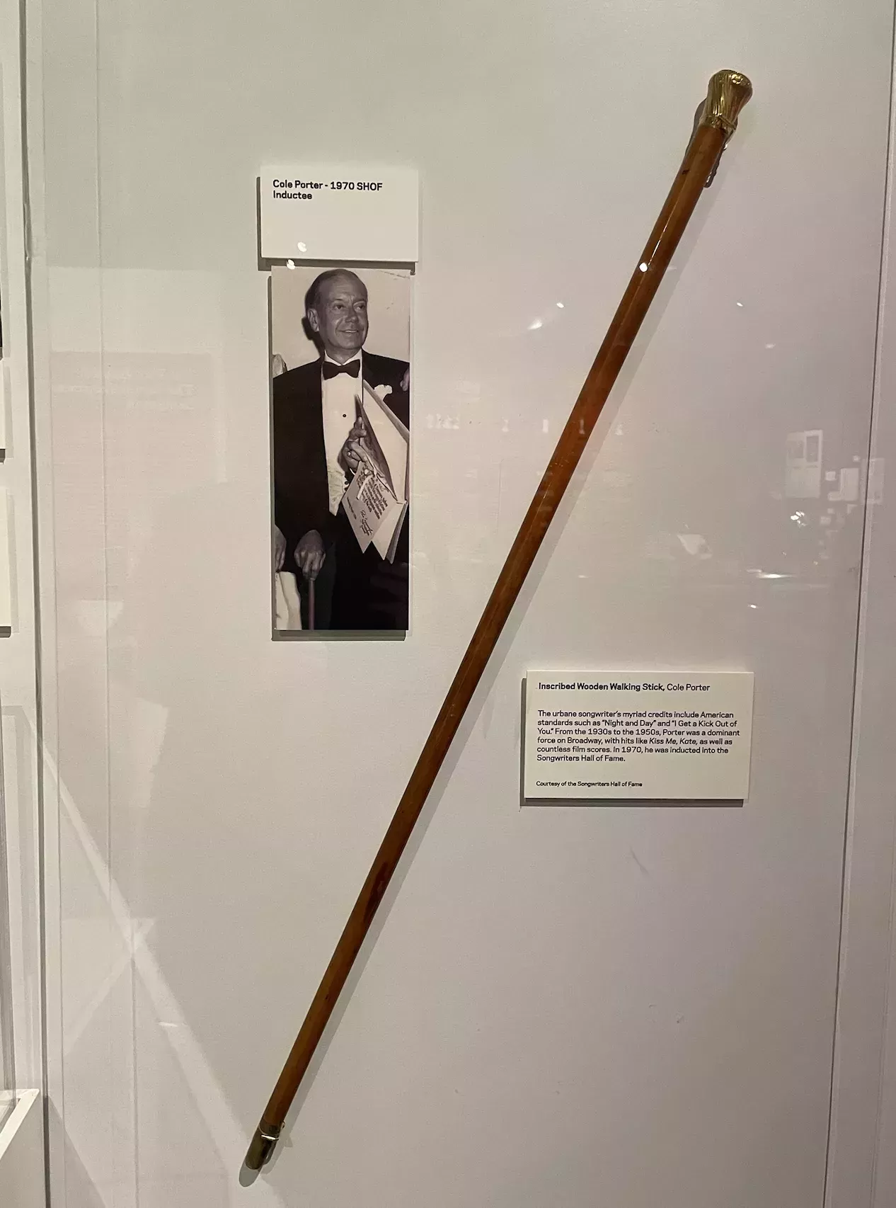 La exposición "El poder de la canción: A Songwriters Hall of Fame Exhibit" abarca desde el piano de Irving Berlin y el bastón de Cole Porter hasta las contribuciones materiales de autores contemporáneos como Benny Blanco y Dan Reynolds de Imagine Dragons. En medio de estos polos, se pueden encontrar letras y partituras manuscritas, telegramas, notas de producción, cintas de demostración en casete, Oscars y, para que una exposición de escritores no parezca una persecución de papeles, incluso algunas chaquetas usadas por escritores-intérpretes más sartoriales como John Legend y Annie Lennox.