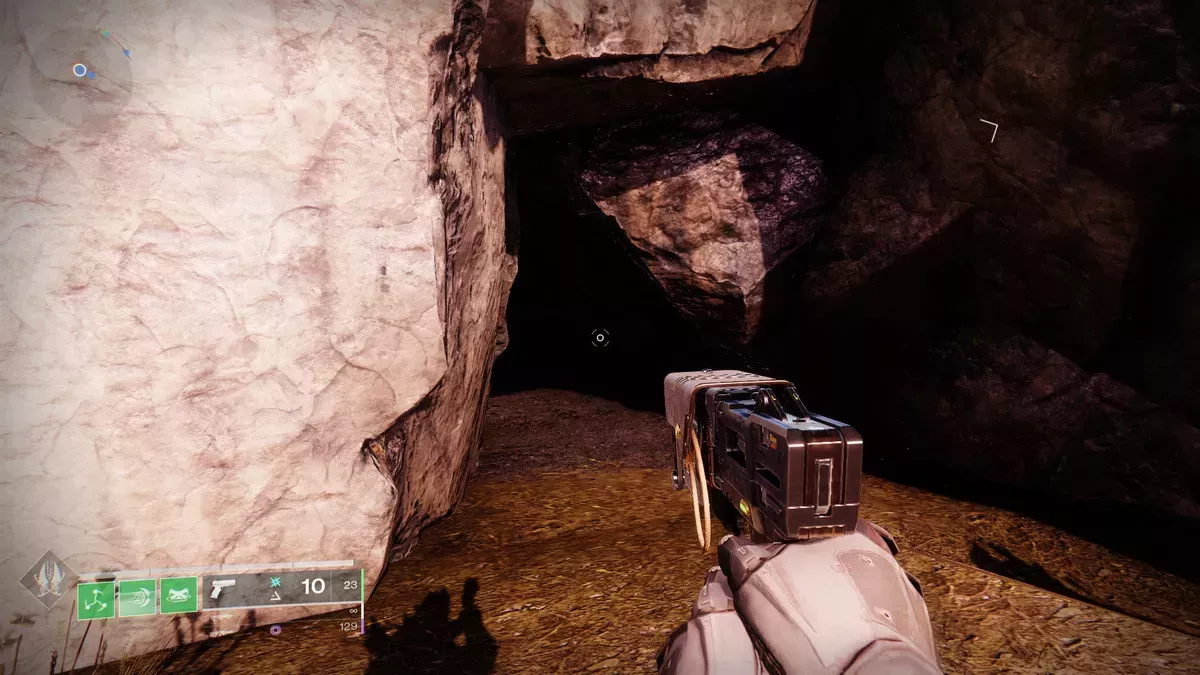 Una vez que aterrices, dirígete a la parte izquierda de la zona junto a los acantilados. Déjate caer por el lateral y busca un gran labio casi hasta el fondo. Aterriza en él y entra.