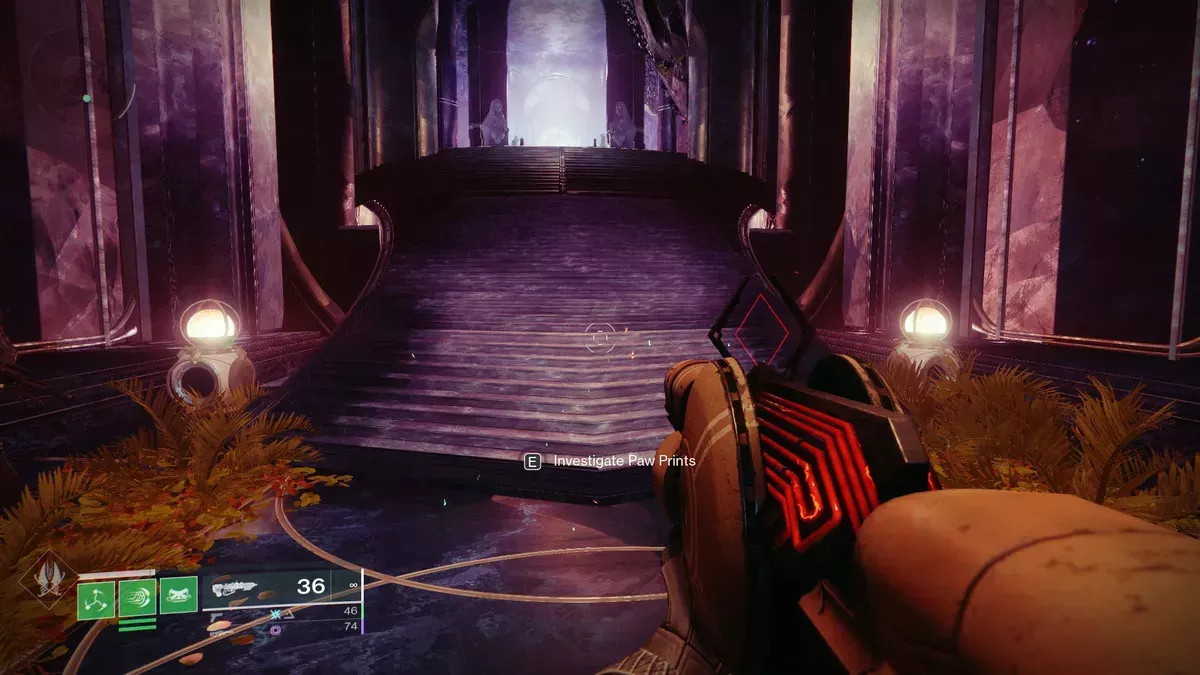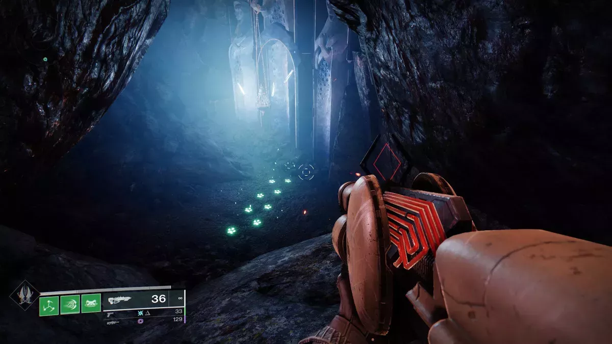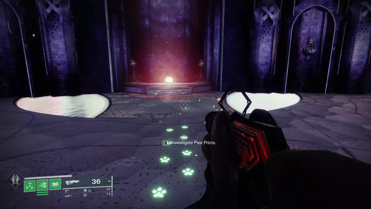 La forma más rápida y sencilla de llegar a este conjunto de huellas es dirigirse a Rheasilvia y atravesar la gigantesca catedral del lado norte, que te lleva al Aislamiento del Precursor.