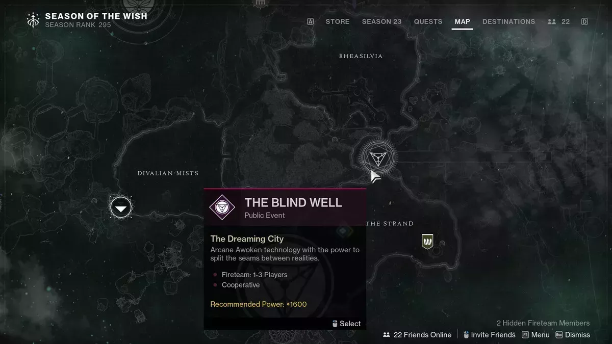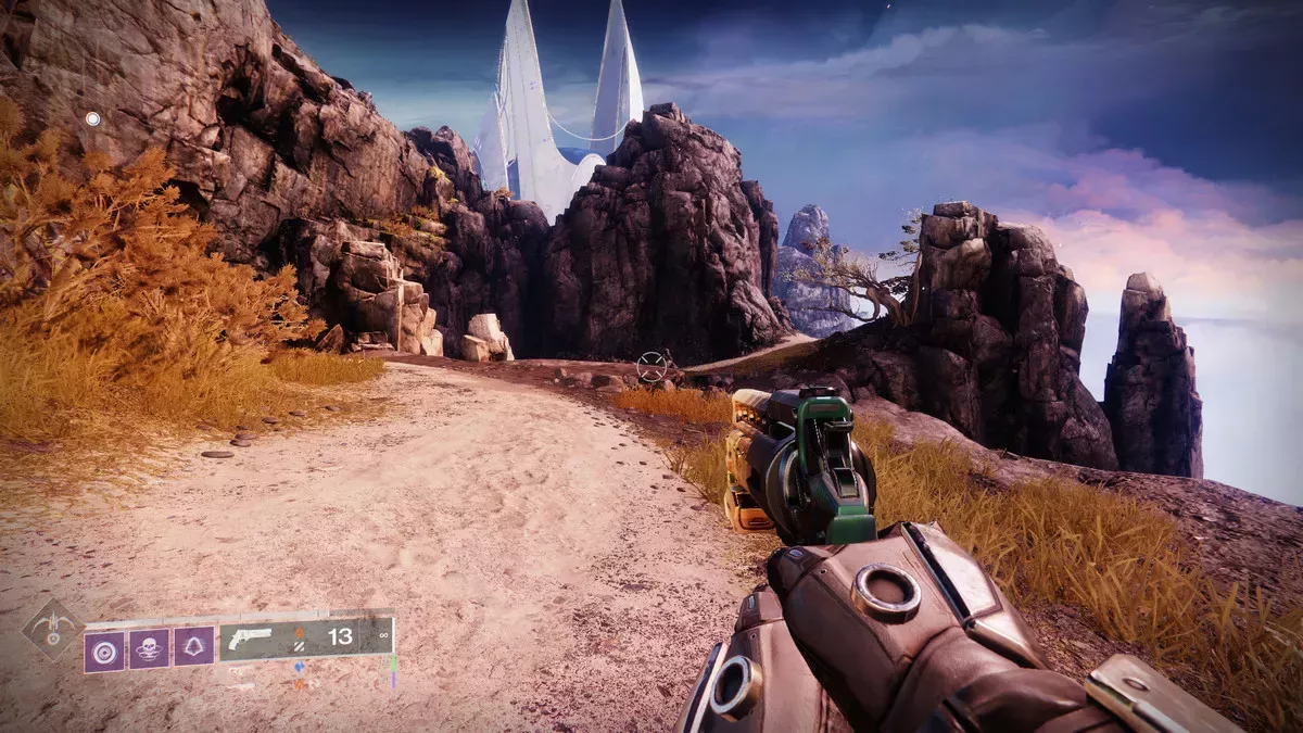 La primera pista te lleva a las Nieblas Divalianas. Cuando aterrices, sube a tu vehículo y dirígete a la catedral gigante que tienes delante, que te lleva a la actividad Pozo Ciego.