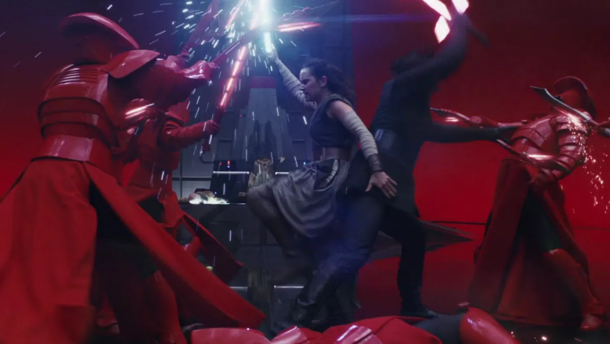 Mientras tanto, a Kylo le disgusta todo el mundo excepto su madre, Rey y ese ayudante de la Primera Orden que localizó a Rey, y sus momentos berserker tienden a centrarse en los hombres, particularmente en aquellos que percibe como una amenaza para Rey. Sin embargo, Kylo afirma torpemente "No eres nada, pero no para mí" a Rey, al tiempo que la atormenta a ella y a sus amigos a lo largo de las películas hasta su redención.