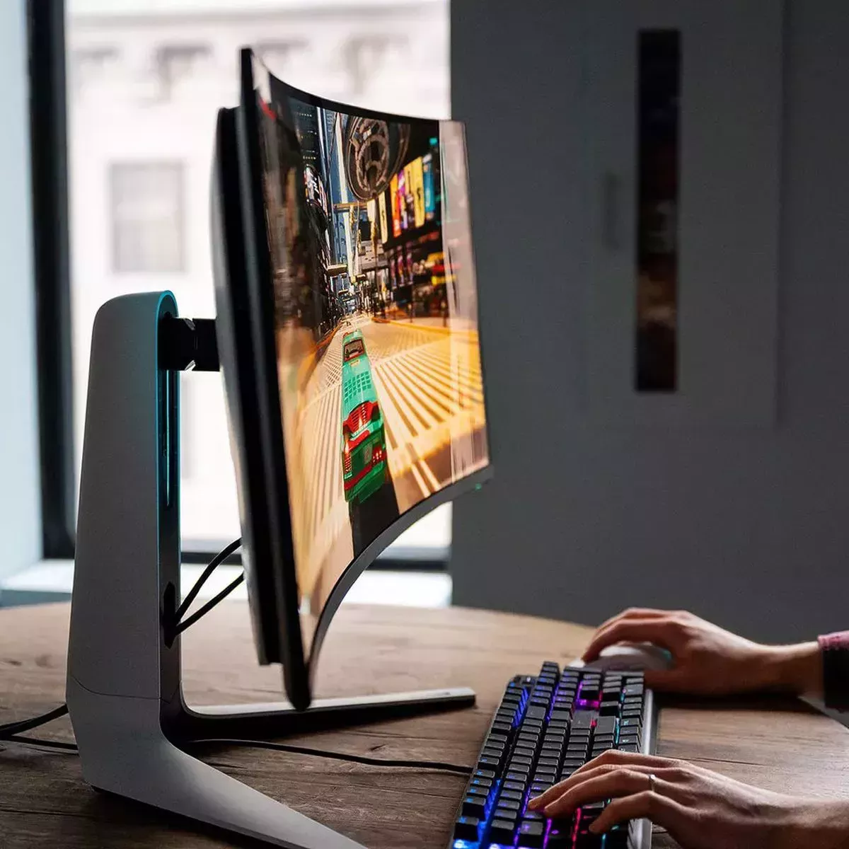 El monitor para juegos AW3423DWF de Alienware cuenta con una pantalla QD-OLED curva que proporciona una calidad de imagen y un contraste asombrosos. Su rápida frecuencia de actualización de 165 Hz funciona con juegos de PC, y admite hasta 100 Hz con consolas.