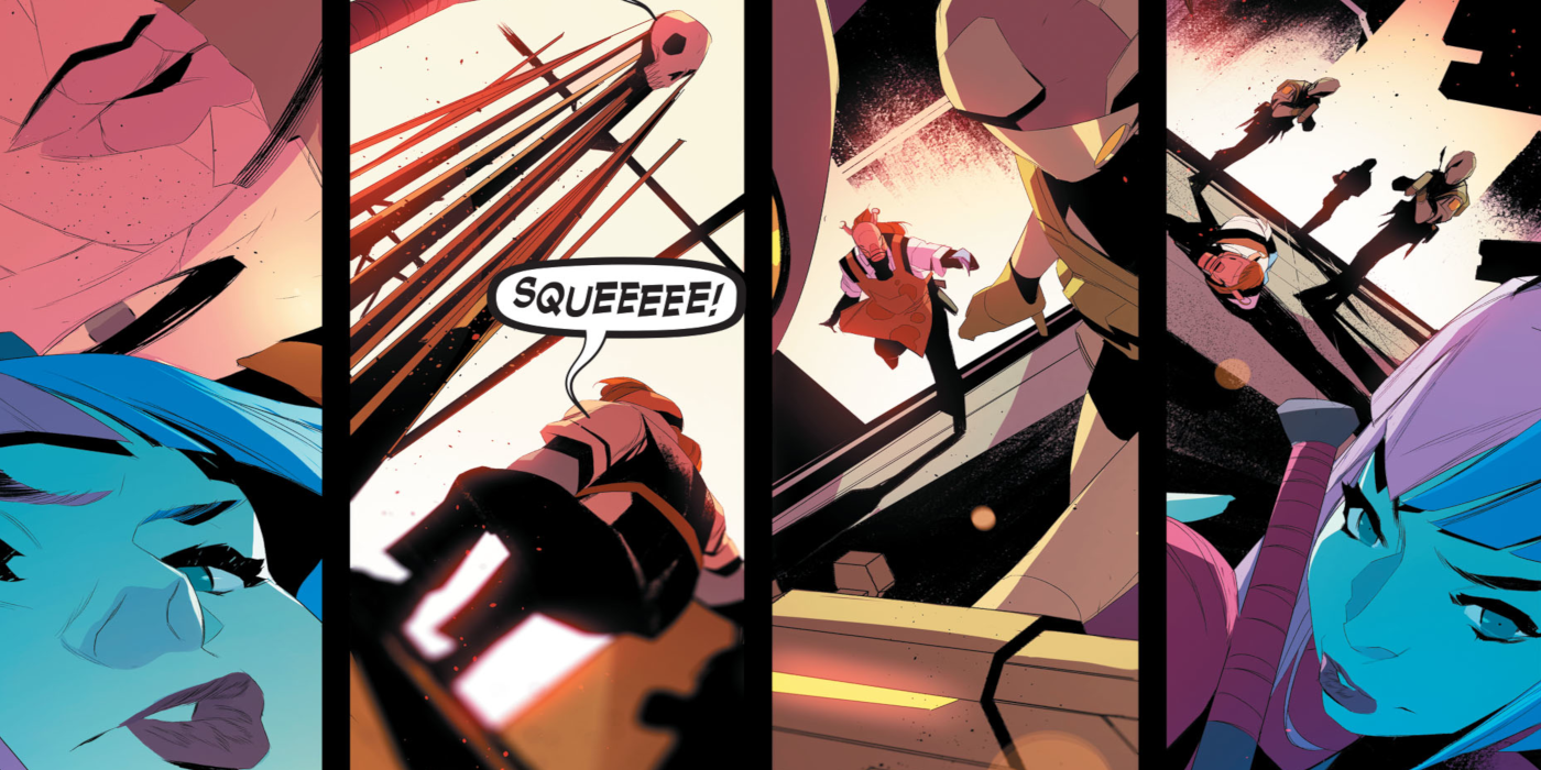 El nuevo aspecto de Pyg es su cambio más notable en Future State. Normalmente, Pyg usa un delantal de carnicero, empuña una especie de cuchillo y lo remata todo con una máscara de cerdo de porcelana. Pero en lugar de que parezca que pertenece a un estante de tchotchke, DeMid le da un rediseño sencillo. Se queda con el traje de carnicero y los cuchillos, pero cambia la fachada por algo más parecido a una pesada máscara de gas. Enormes anillos de oro cuelgan de las orejas y se filtran, haciéndole parecer más un enorme cerdo que un cientÃfico loco. Los colmillos también ayudan en ese sentido.