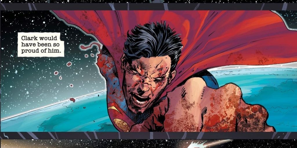 Después de momentos llenos de lágrimas con Ma Kent, Lois Lane y su hijo Jon, Superman intenta volar tan lejos de la Tierra que no podrá regresar una vez que la ecuación se afiance. En un momento verdaderamente desgarrador, Superman se transforma antes de escapar lo suficientemente lejos al espacio, condenando al mundo, por los momentos de tranquilidad que tomó.