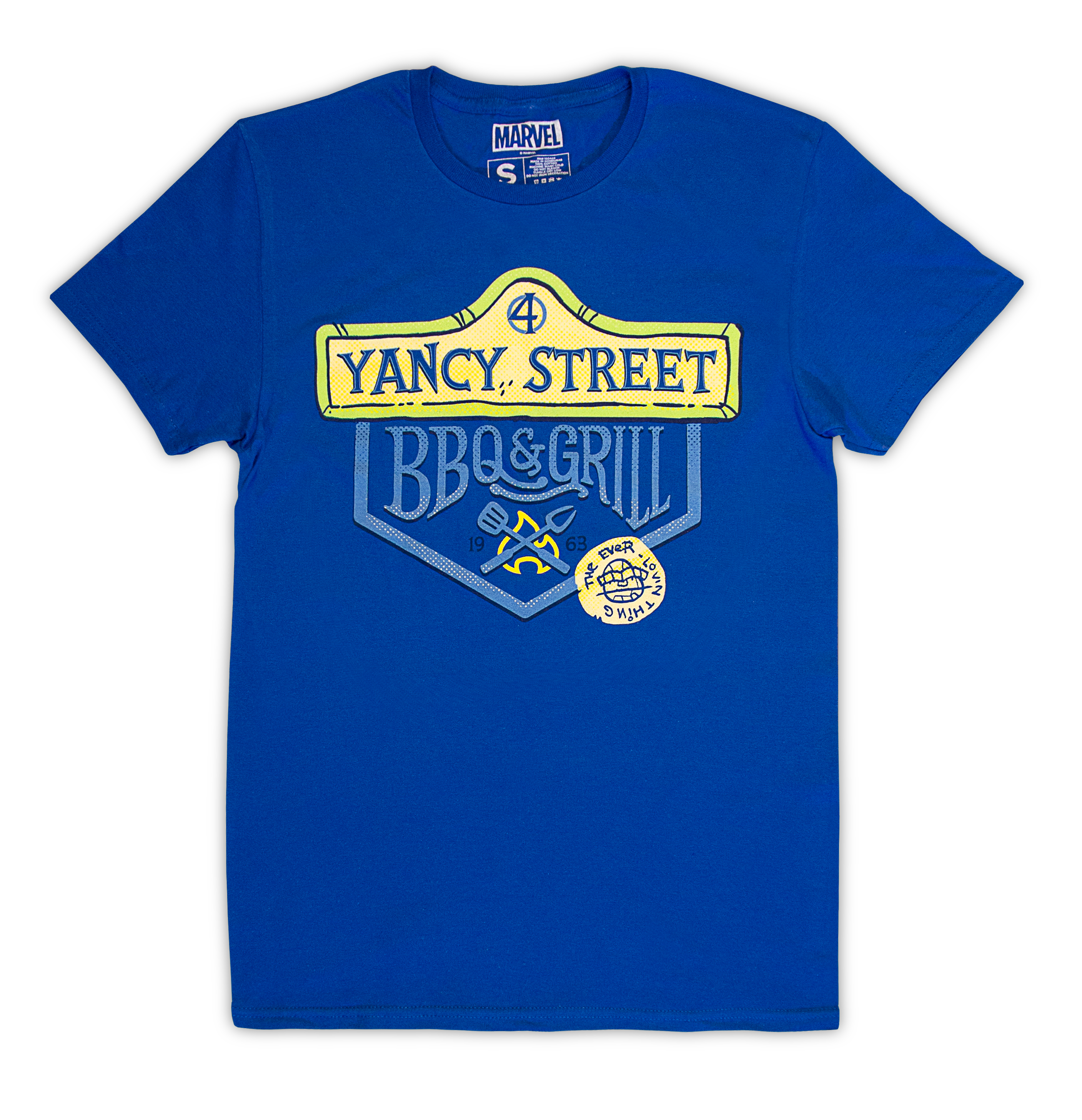 Parece que Loot Crate se está aprovechando de la calle 4 Yancy para este nuevo cajón de Marvel. Para los no iniciados, el 4 de la calle Yancy es un edificio en Manhattan propiedad de Ben Grimm, alias La Cosa. Se introdujo al principio de la actual serie de cómics de los Cuatro Fantásticos de Marvel Comics, convirtiéndose en la nueva sede del equipo homónimo después de que el Edificio Baxter fuera absorbido por los Fantásticos. Dicho esto, mientras la camiseta rinde homenaje al 4 de la calle Yancy, la bolsa sigue nombrando el edificio Baxter.