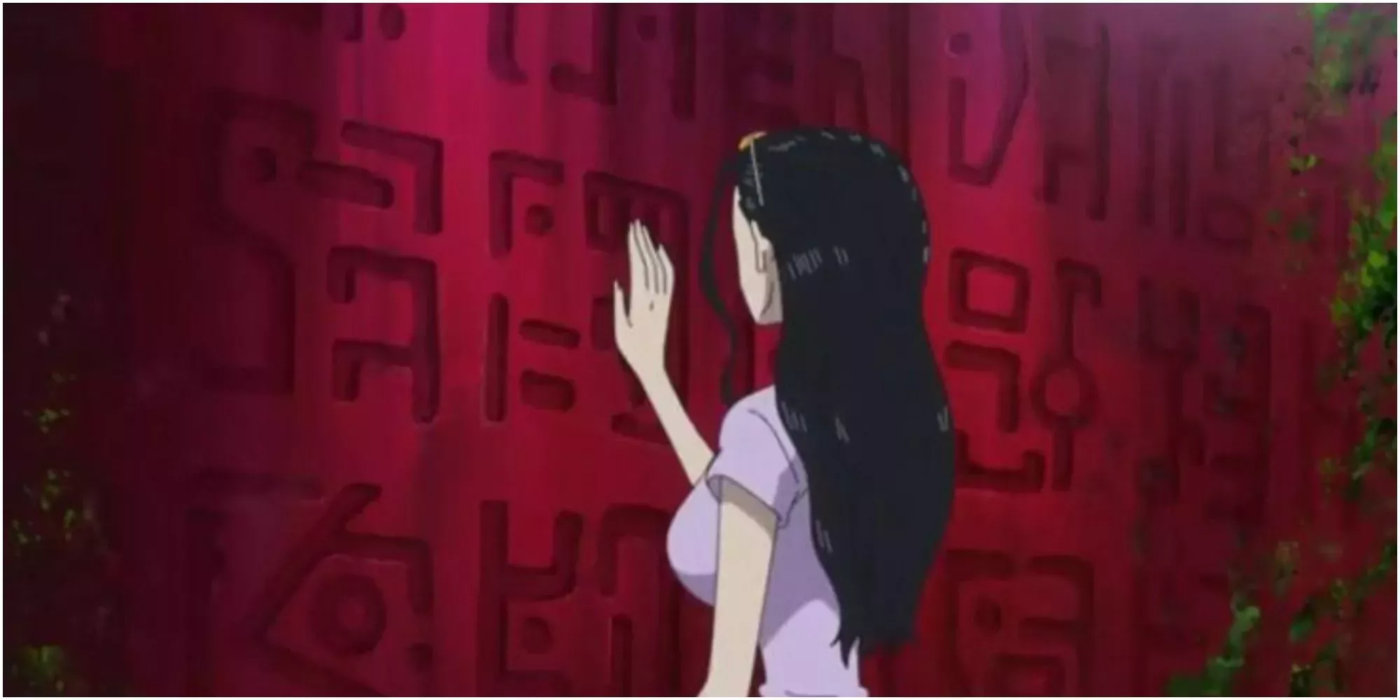 Debido a su habilidad para descifrar los Poneglyphs, Nico Robin pasó dos décadas tratando de evadir a los Marines y al Gobierno Mundial. En su juventud, mientras se escondía en una isla desconocida del West Blue, se topó con un Poneglyph abandonado en lo más profundo del bosque.