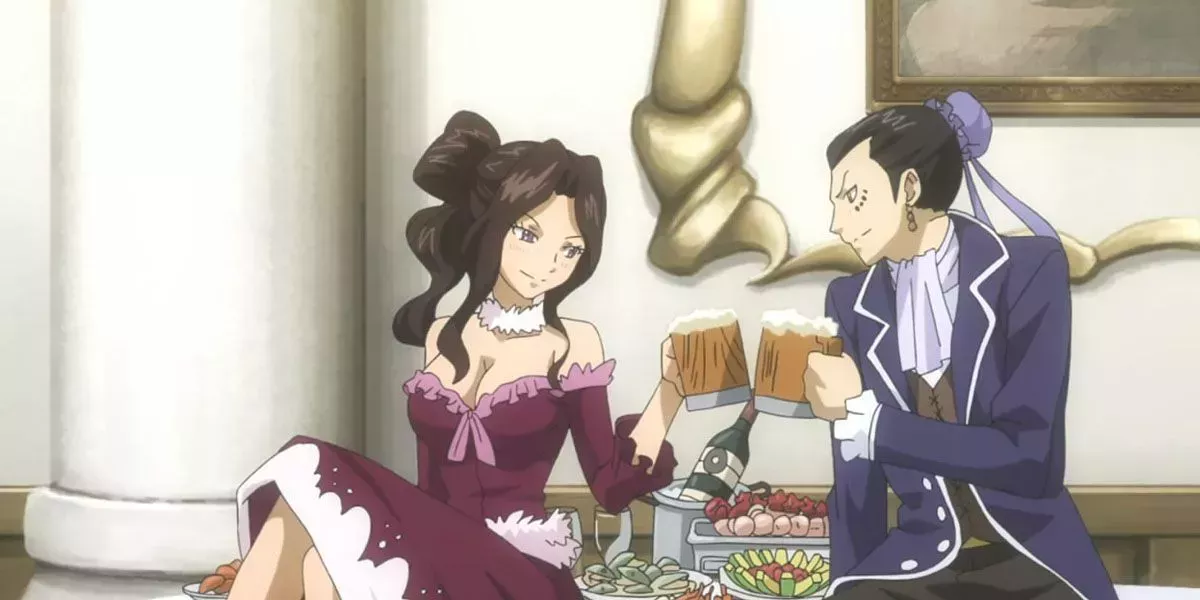 Esta pareja apenas tiene tiempo en pantalla, pero son perfectos el uno para el otro. No es de extrañar que los fans los emparejen. Ambos son amantes de la diversión, bebedores de cerveza y lanzadores de hechizos. Bacchus es un mago del gremio Quatro Cerberus, mientras que Cana es miembro de Fairy Tail.