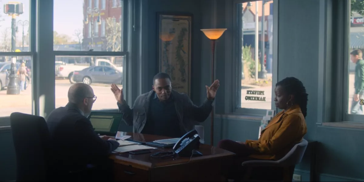La escena que protagoniza la discusión tiene lugar en un entorno tan aterrizado y realista como el MCU consigue. Sam Wilson, alias el Halcón, acompaña a su hermana cuando van a pedir un préstamo a un banco para apoyar el negocio de su familia. El gestor del préstamo se pregunta de dónde conoce a Wilson antes de que un recordatorio no tan sutil refresque la memoria del gestor de la estrella. Con el héroe de altos vuelos Falcon en su presencia, se ríe de la celebridad que está al otro lado de la mesa y, con el papeleo de las finanzas de Wilson justo delante de él, pregunta a bocajarro cómo se compensa a los Vengadores.