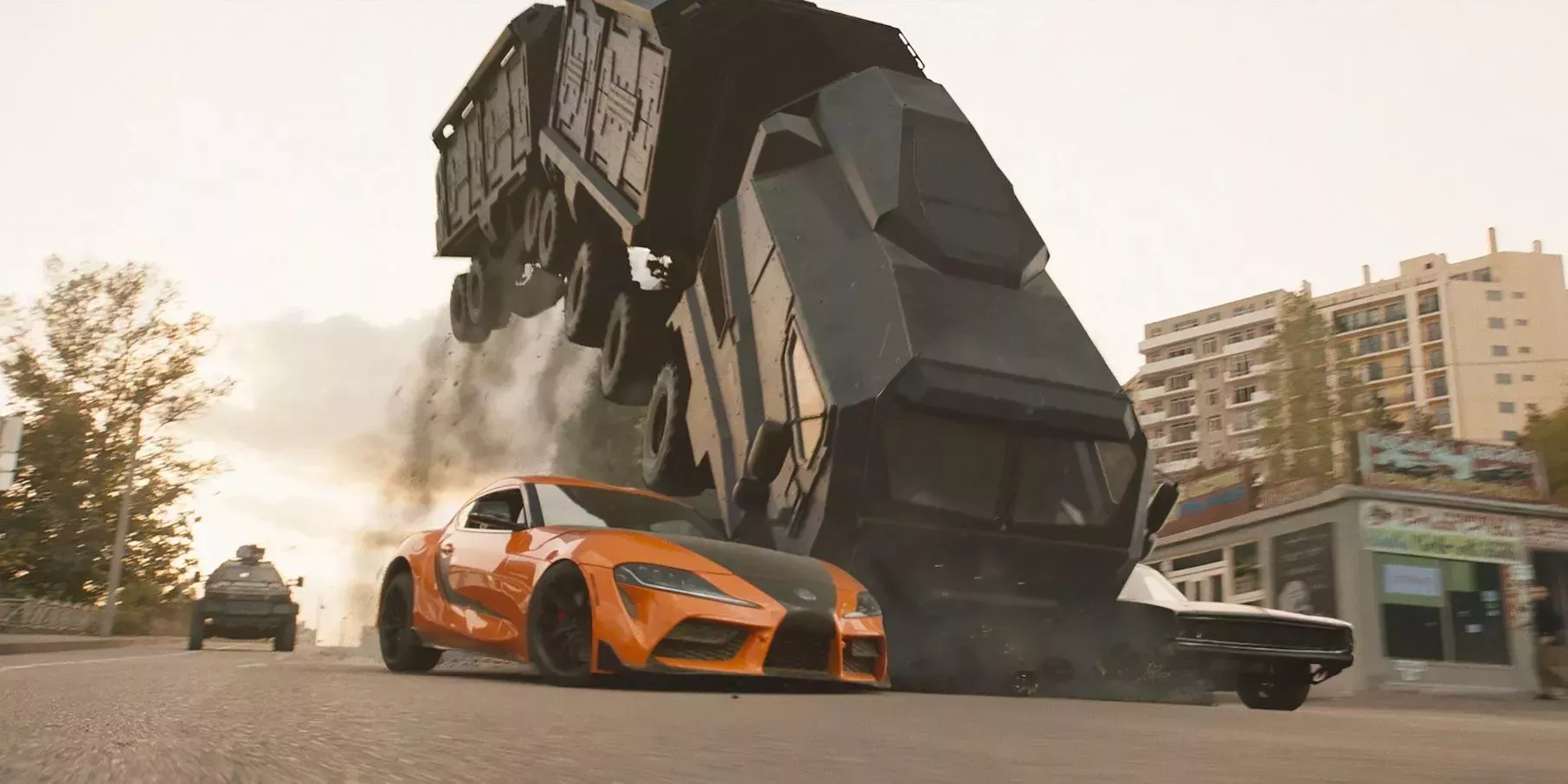 Esta secuencia de persecución mantiene la destrucción exagerada del F9 en constante movimiento, sirviendo como fanfarria a la destrucción que desafía a la ciencia de la acción anterior de la saga.