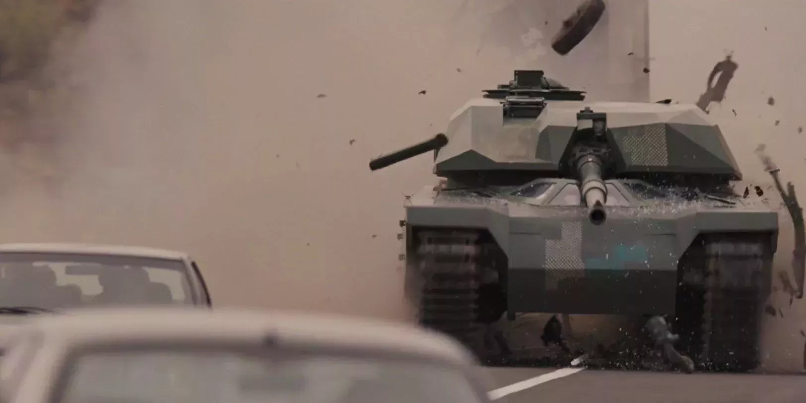 La carnicería automovilística de la franquicia Fast & Furious alcanza nuevas cotas en la penúltima escena de Furious 6. Shaw conduce un tanque por el desierto, diezmando coches y aplastando a los peatones; el número de muertes de la serie probablemente se duplique solo con esta secuencia.