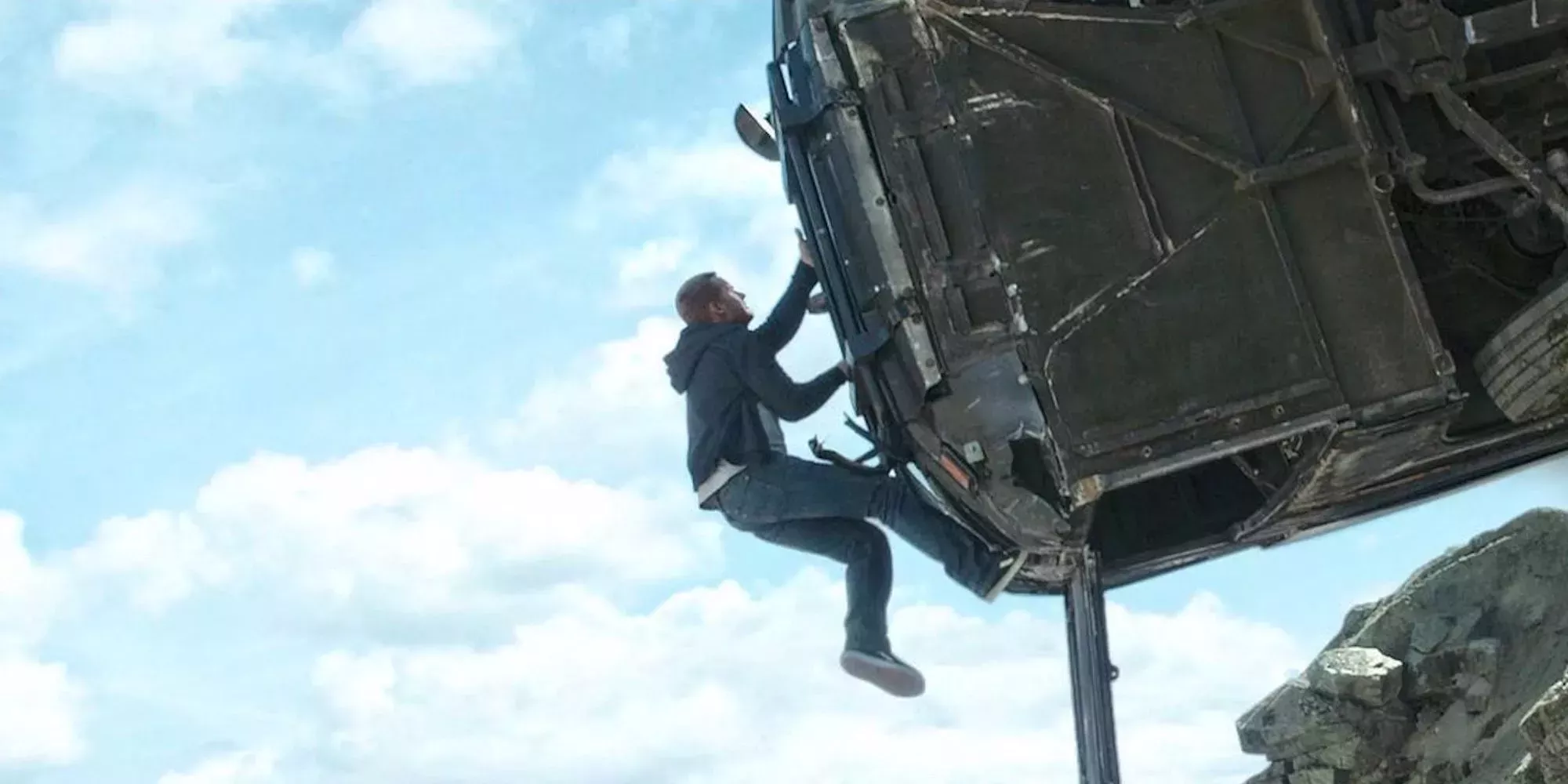 Lo que comienza como una misión de rescate se convierte poco a poco en una emocionante secuencia de acción de varios niveles; mientras Dom persigue a Shaw, Walker protagoniza uno de los mejores encuentros cuerpo a cuerpo de toda la serie, enviándolo posteriormente (y al autobús) al borde de un acantilado, después de que el vehículo se salga de la carretera.