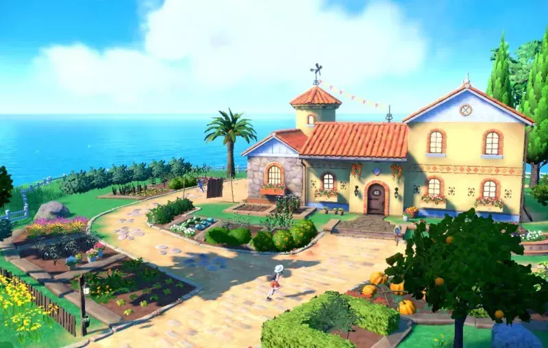 Pasemos ahora al escenario/región de Pokémon Escarlata y Violeta. No se ha dicho oficialmente cómo se llama la nueva región, pero parece ser de estilo mediterráneo. Muchos han apuntado a España como influencia, con casas blanqueadas por el sol y amplias praderas. Puedes ver el nuevo escenario en la imagen superior.