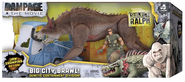 Próximamente, Lanard, la misma compañía responsable de la línea de juguetes Kong: Skull Island, presentará la línea de juguetes Rampage, que parece incluir cinco conjuntos de figuras diferentes: