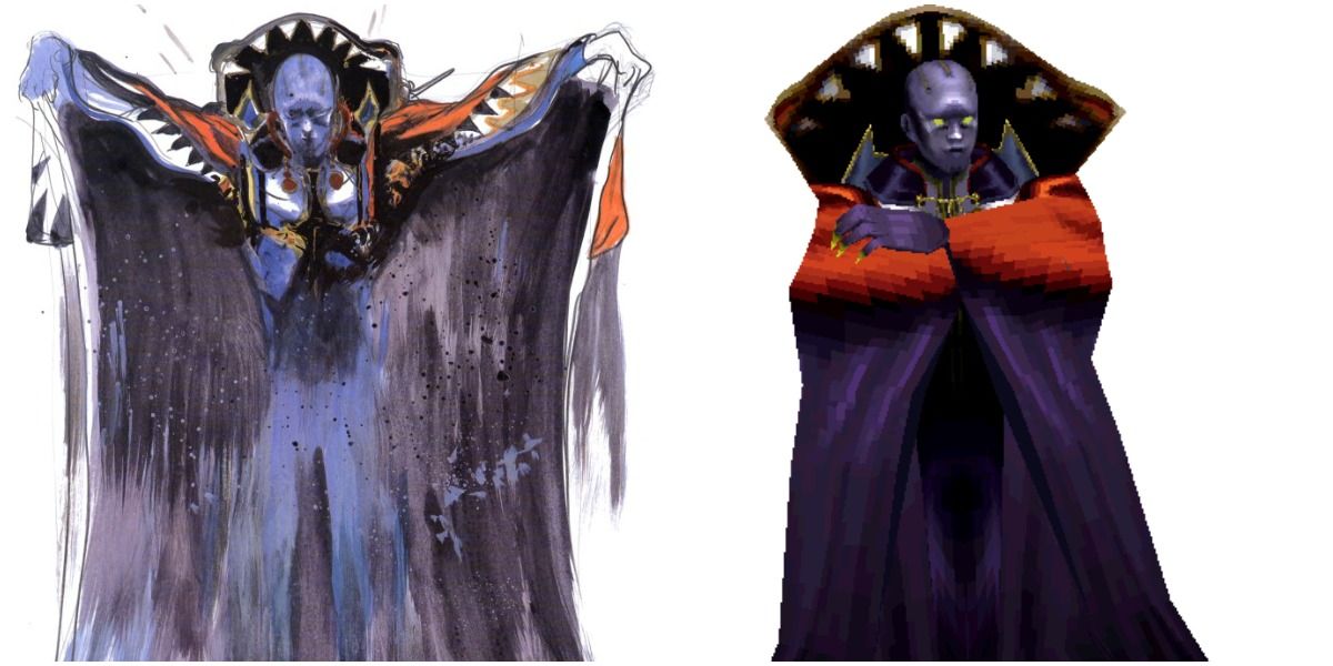Kefka es aclamado como uno de los mejores villanos de Final Fantasy. Es un mago de la corte que enloqueció mientras era sometido a experimentos para convertirse en el primer Caballero Magitek. Altamente destructivo y hambriento de poder, Kefka es frívolo y no siente más que desprecio por las emociones positivas.