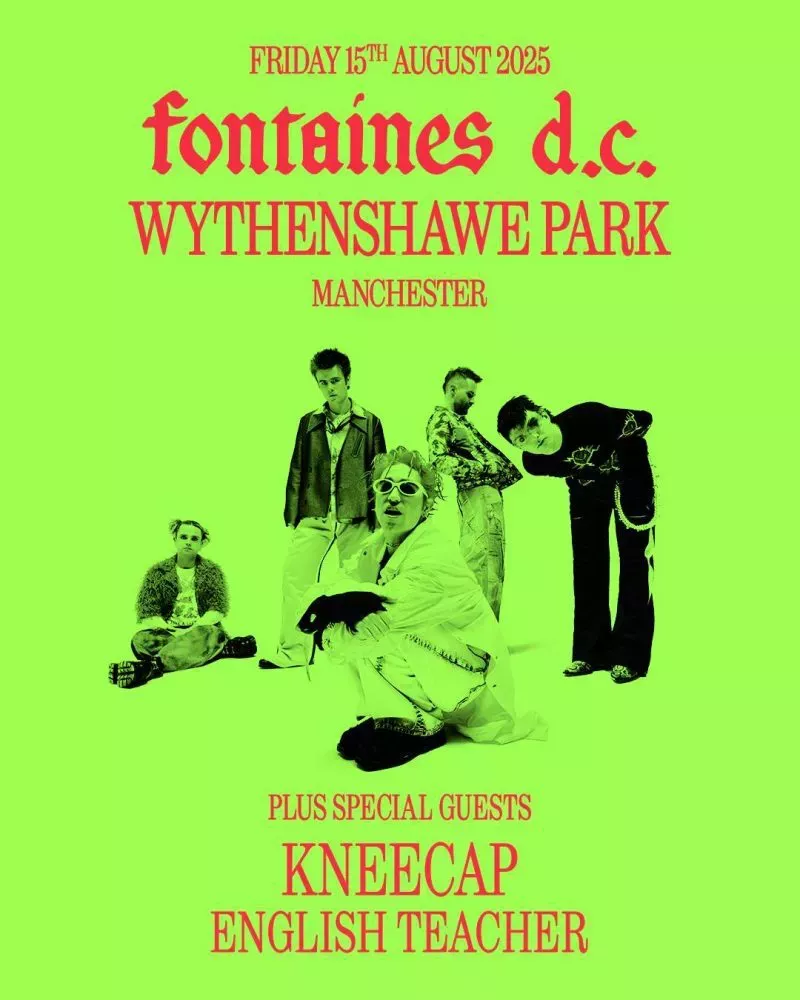 Fontaines D.C. han anunciado un gran espectáculo en el Wythenshawe Park de Manchester para el verano de 2025, en el que estarán acompañados por Kneecap y English Teacher.
