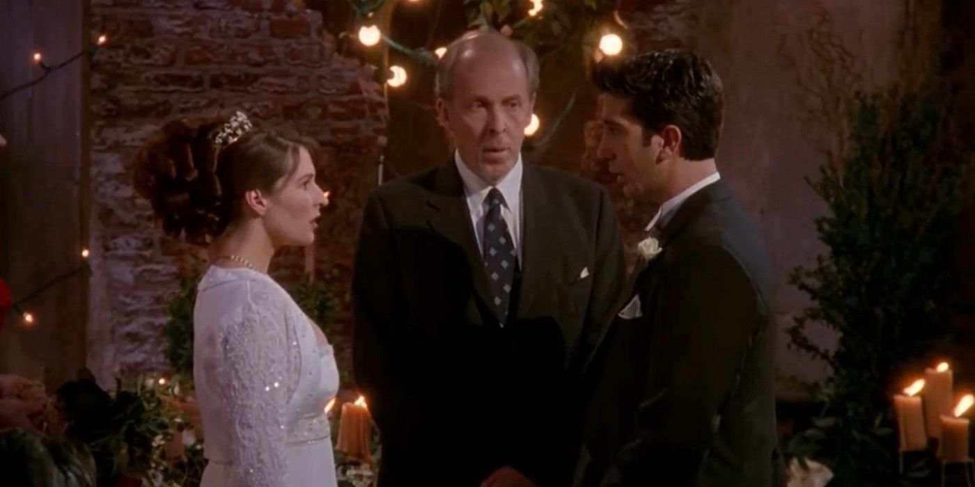 Deprimida y molesta con su madre, Mónica es consolada por Chandler y posteriormente comparte la noche con él. Rachel aparece en la boda y Ross dice por error sus nombres en sus votos a Emily. La temporada termina en un cliffhanger ya que la audiencia no sabe si la boda continuará.