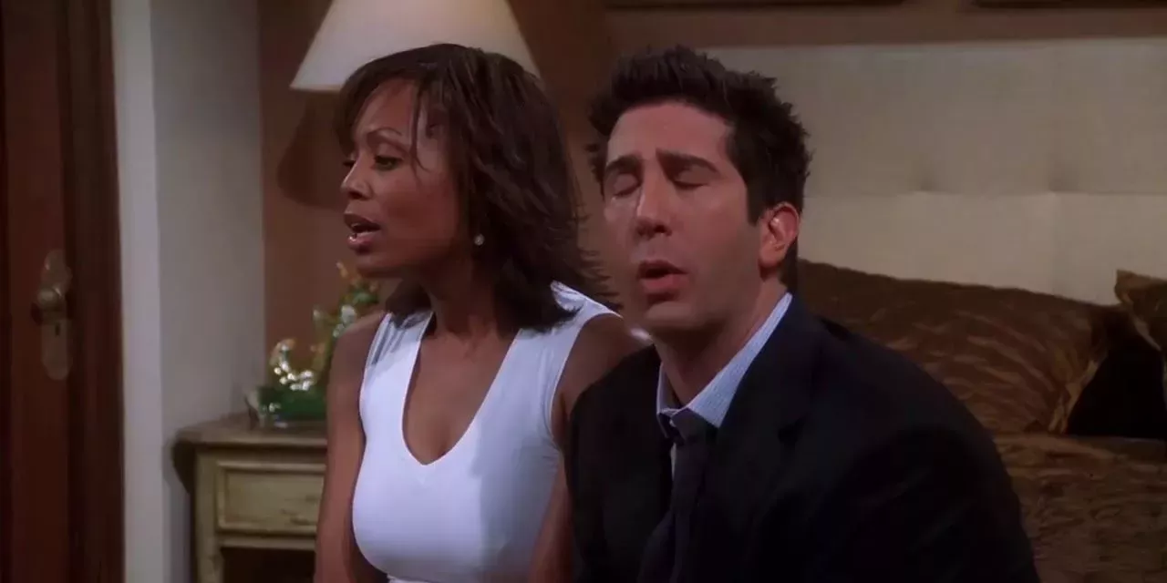 Friends insiste mucho en la idea de que Ross va a casarse con Emily y que incluso podría mudarse a Londres para estar con ella. A menudo se presenta a Emily como problemática debido a lo controladora que es con respecto a Ross y a su inseguridad sobre la relación que mantiene con Rachel. Resulta que Emily tiene razón en sus sospechas porque Ross dice accidentalmente el nombre de su ex durante sus votos matrimoniales con Emily. Es un momento emocionante para los fans de Ross y Rachel, pero es una forma tan horrible de terminar la relación de Ross y Emily. La rompe.