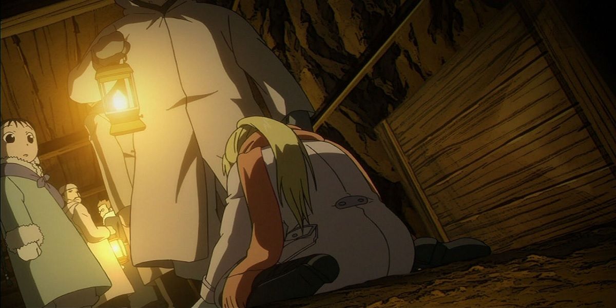 Ed y Al son personajes que casi siempre se niegan a mostrar todo el alcance de sus emociones. Tiene sentido para Edward, que ha tratado de actuar con dureza desde el primer día, pero incluso el más empático Alphonse trata de ocultar su verdadera tristeza interior la mayor parte del tiempo. La empatía de Winry realmente brilla en momentos como este, ya que fue la única del trío que lloró cuando los Elrics quemaron su casa familiar. Insistió en que si no iban a llorar por ellos mismos, al menos podría hacerlo por ellos.