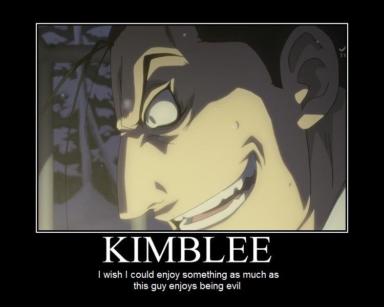 Los televidentes con cualquier tipo de experiencia lo saben bien: esa sonrisa de oreja a oreja casi siempre significa problemas, al menos en el 98% de las veces. En el caso de Kimblee, la sonrisa es definitivamente una indicación de que un mal día está a la vuelta de la esquina.
