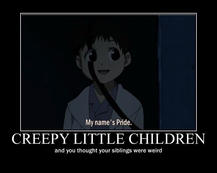 Ver a este "chico" en acción con su familia de mentira tiene que ser una de las vistas más crueles de la FMA. Incluso su sonrisa de oreja a oreja en la oscuridad no es tan espeluznante como la actitud burbujeante que emana el orgullo cada vez que interpreta su papel de Selim, el hijo adoptivo del Führer King Bradley.