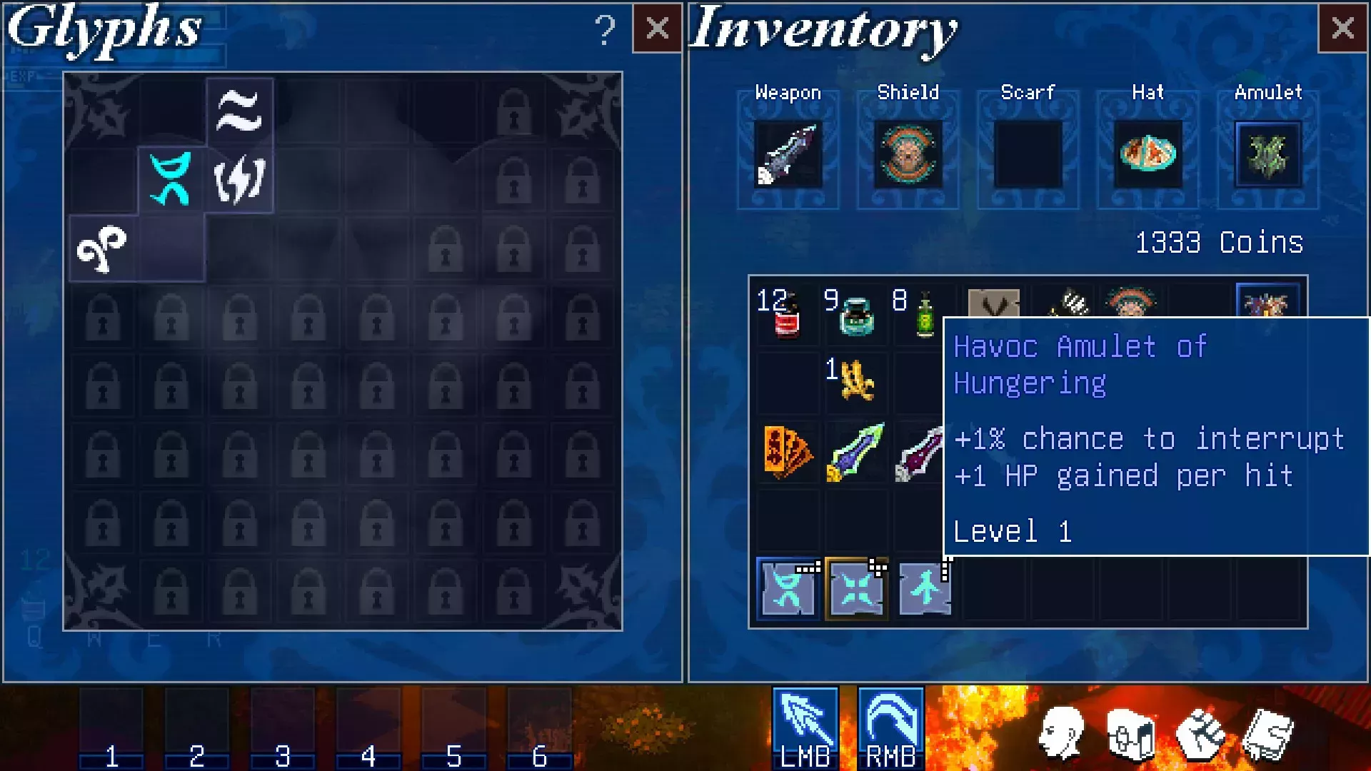 La subida de nivel es interesante y un poco diferente: inspirado en el antiguo sistema de amuletos de Diablo, esta vez trabajamos con glifos, con una ranura de glifo adicional que se desbloquea por cada nivel ganado. Los glifos compuestos utilizan un divertido sistema de formas entrelazadas (algo así como el Tetris) que ofrecen bonificaciones a los glifos simples de una sola ranura: piensa en bonificaciones familiares como el aumento de la evasión, el daño de las habilidades básicas y los multiplicadores de daño elemental que se encajan como un puzzle.
