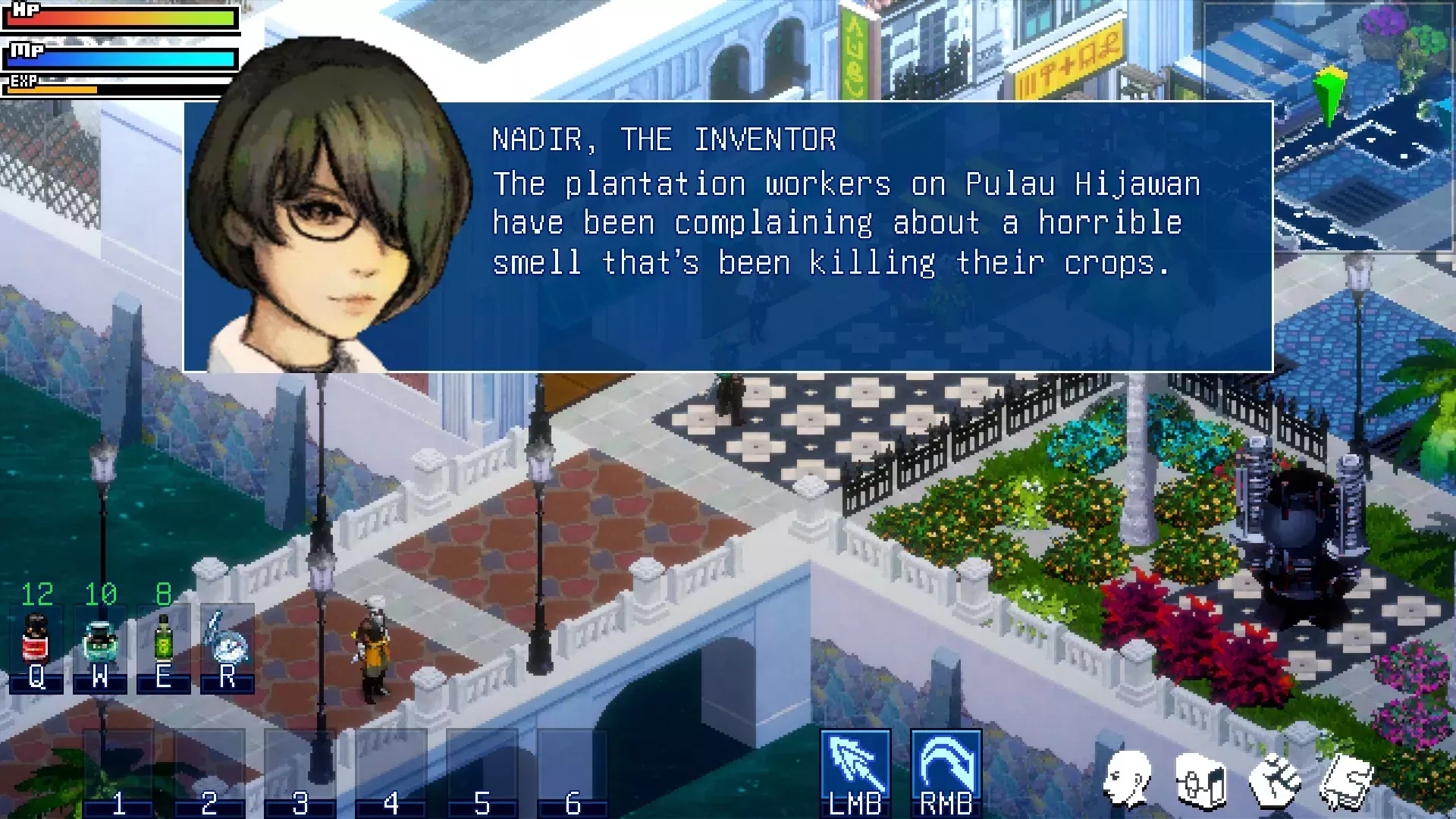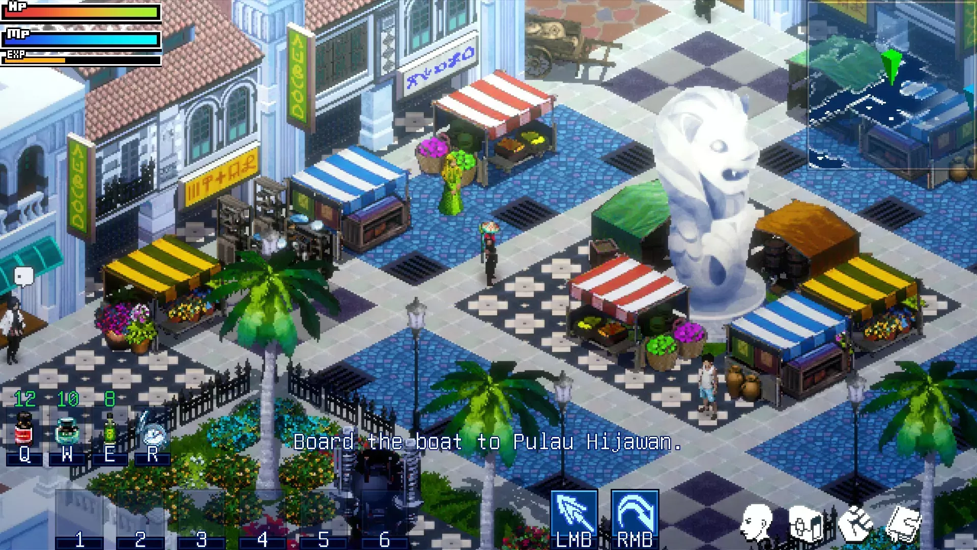 El islote fantasma Pulau Hijawan es nuestra primera introducción a la vida de los kampones que rodean el puerto marítimo, con pequeñas granjas y gallinas semisalvajes sueltas (sí, sueltan huevos). Otro islote, Pulau Kubor, toma prestados elementos de la histórica Pulau Blakang Mati, una pequeña mancha que se utilizó como fuerte colonial durante la Segunda Guerra Mundial; hoy, Pulau Blakang Mekati se conoce como Sentosa y alberga un montón de hoteles de lujo, clubes de playa y un parque temático de Universal Studios. La descripción de la ubicación de la isla que hace Ghostlore es un guiño a estos desarrollos del mundo real: "Los planes de posguerra para convertir el islote en un parque de atracciones se archivaron indefinidamente".
