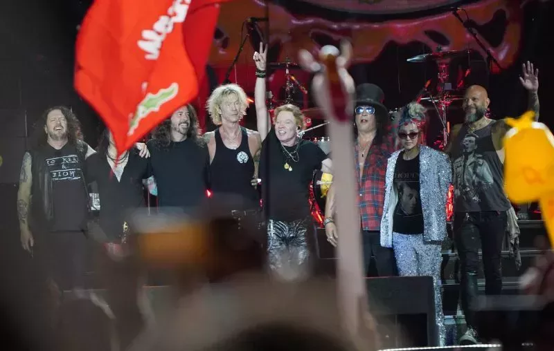 Los iconos del rock de los 80 subieron al escenario como cabezas de cartel el sábado (24 de junio) y ofrecieron un descomunal repertorio de 24 canciones, entre ellas las favoritas de los fans "Welcome To The Jungle" y "Sweet Child O' Mine".