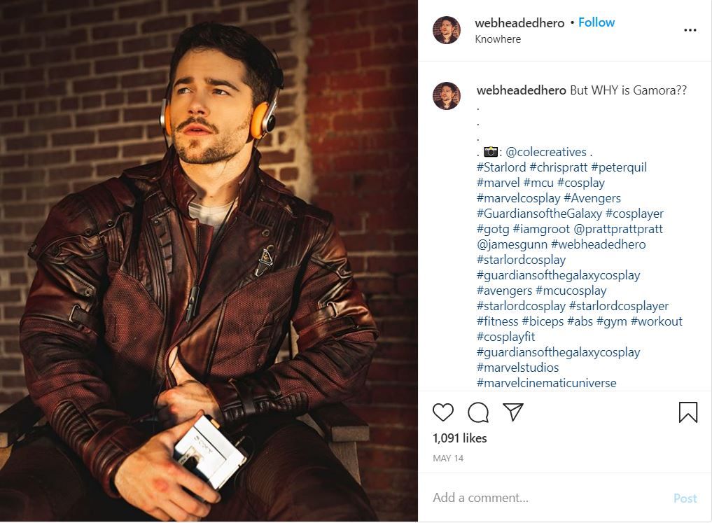 Casi todo el cosplay de los Señores de las Estrellas que se puede ver en Internet tiene su chaqueta granate "ravager" que fue inmensamente popularizada por las películas, pero en los cómics, se ha puesto un traje más del estilo de los uniformes de los superhéroes en ocasiones. Con los cientos de cosplay modelados según la versión de la película Star-Lord, es ciertamente agradable ver a una persona hacer el esfuerzo de rendir homenaje al material de origen.
