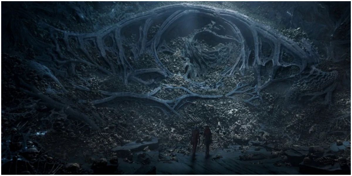 2 Gamora y Nebula encontraron los montones de cráneos que pertenecían a los otros hijos de Ego