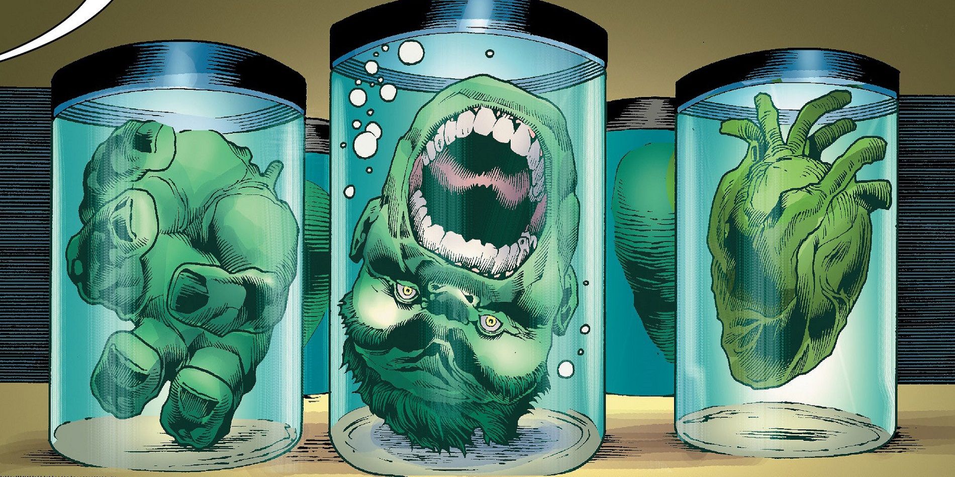¡Incluso cortar a Bruce Banner en pedazos y mantenerlos en frascos separados no impide que Hulk se levante cuando el sol se pone! El Hulk inmortal es una serie de horror corporal que está llena de combustible de pesadilla sin fin en casi todas las páginas.