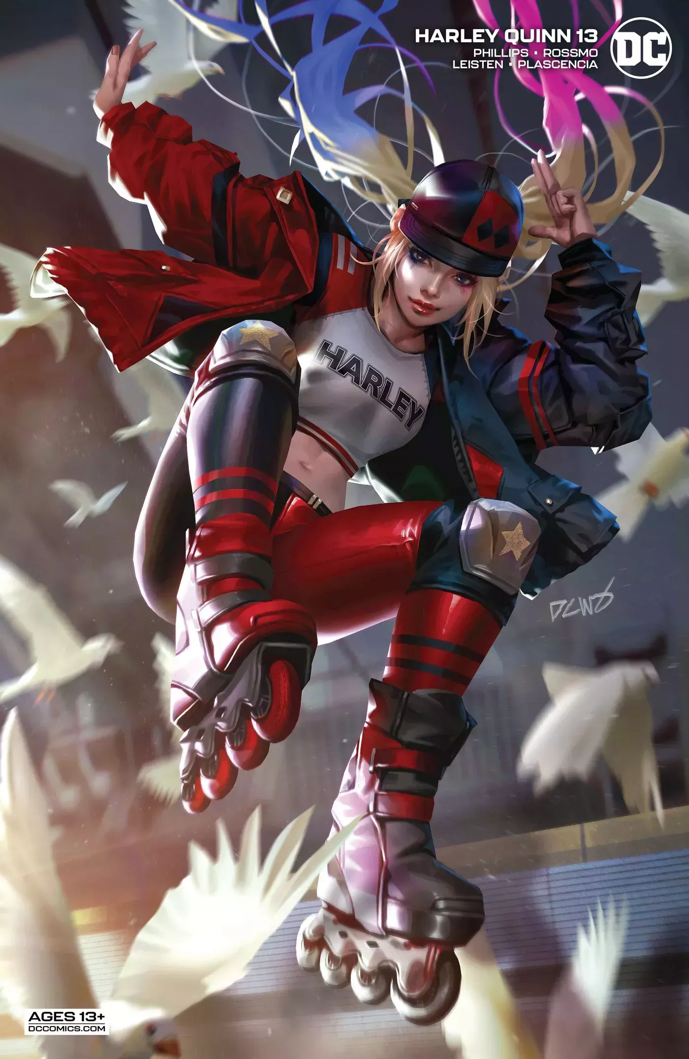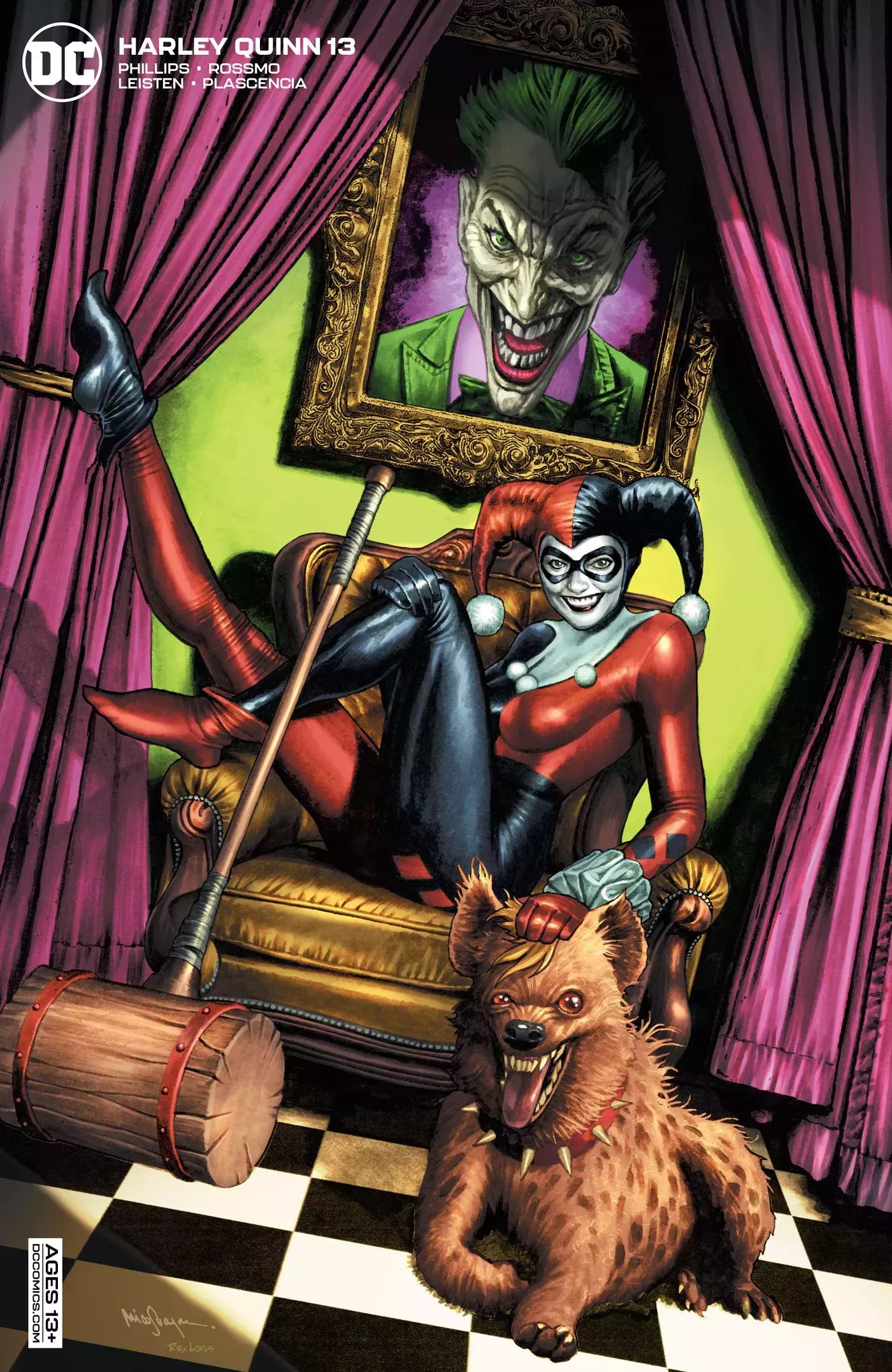 Harley Quinn #13 está escrito por Phillips con arte interior y de portada de Rossmo, tintas de Jay Leisten, colores de Ivan Plascencia y letras de AndWorld Design. Las portadas variantes del número han sido realizadas por Adam Hughes, Rex Lokus, Simone Bianchi, Mico Suayan, Derrick Chew y Will Jack. El número sale a la venta el 22 de marzo en DC Comics.