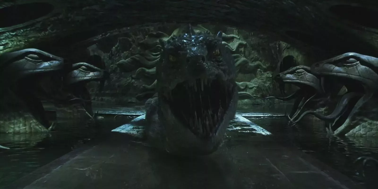 En el segundo año de Harry en Hogwarts, una serie de petrificaciones se abaten sobre la famosa escuela de magia. El culpable es descubierto por Hermione Granger y resulta ser el basilisco de Salazar Slytherin. Liberado de la Cámara de los Secretos por la sombra de Tom Riddle -que poseÃa a Ginny Weasley en ese momento-, el basilisco puede matar con una sola mirada.