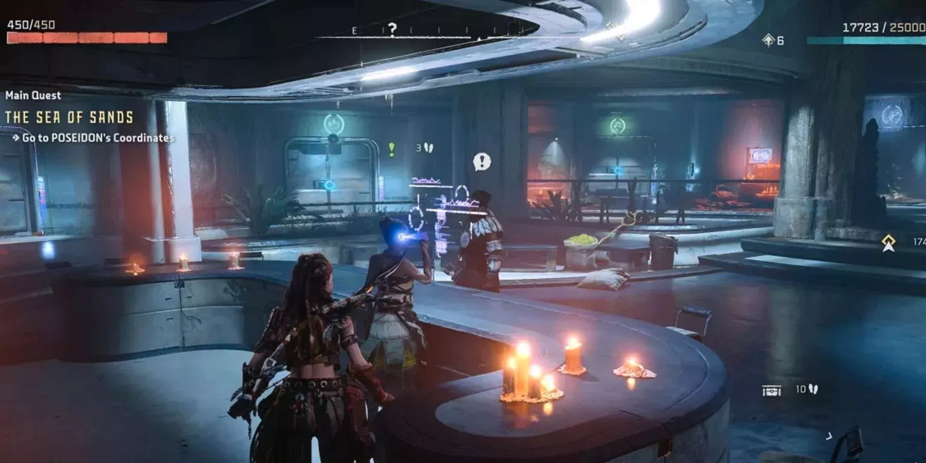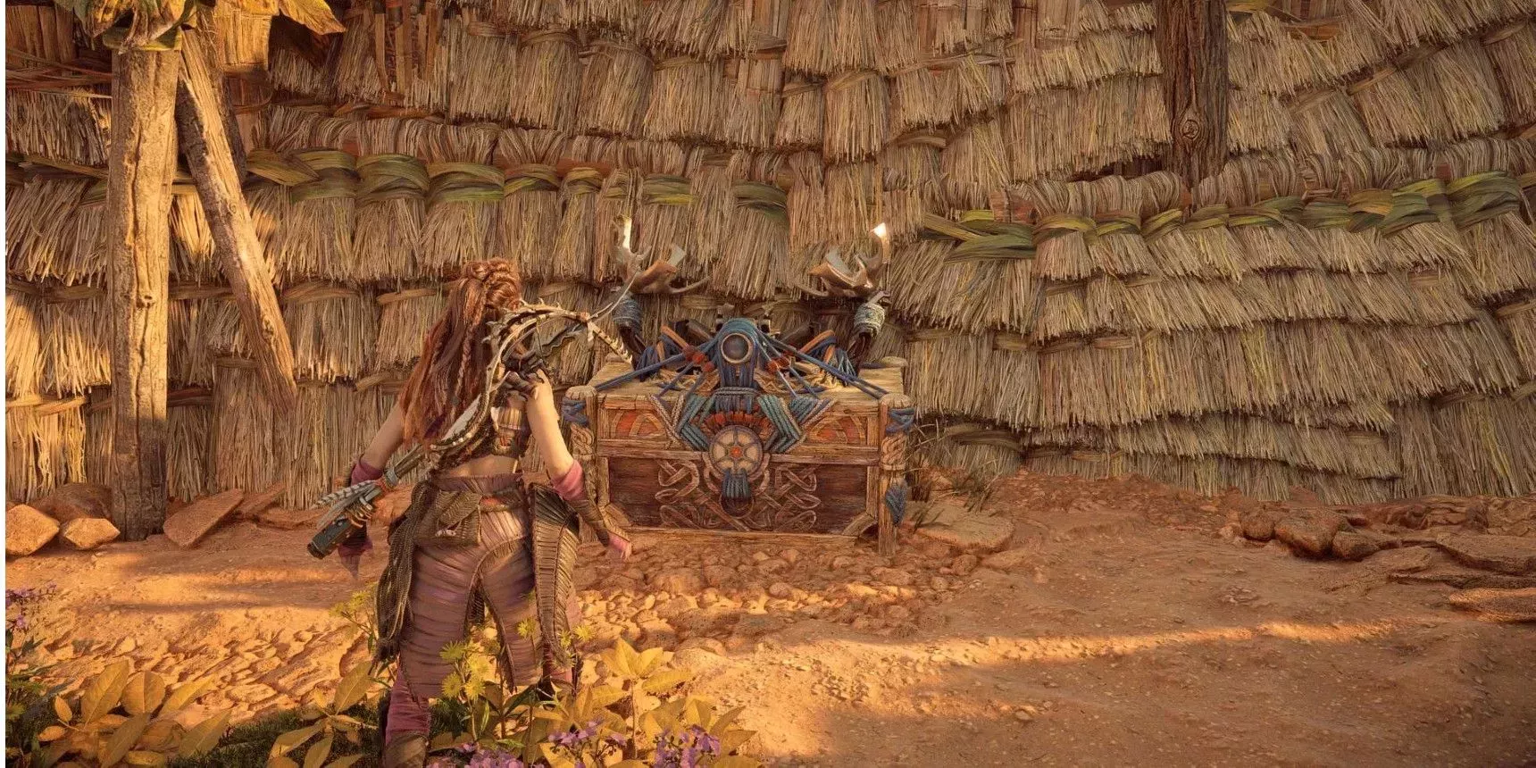 Alrededor de la habitación hay objetos con los que Aloy puede interactuar y comentar. También habla de lo que ha sucedido hasta ahora en su viaje. Al igual que la tumba de Rost, estos objetos permiten a Aloy hacer una introspección. En esta sala, los jugadores se hacen una idea de lo difÃcil que ha sido el viaje de Aloy.