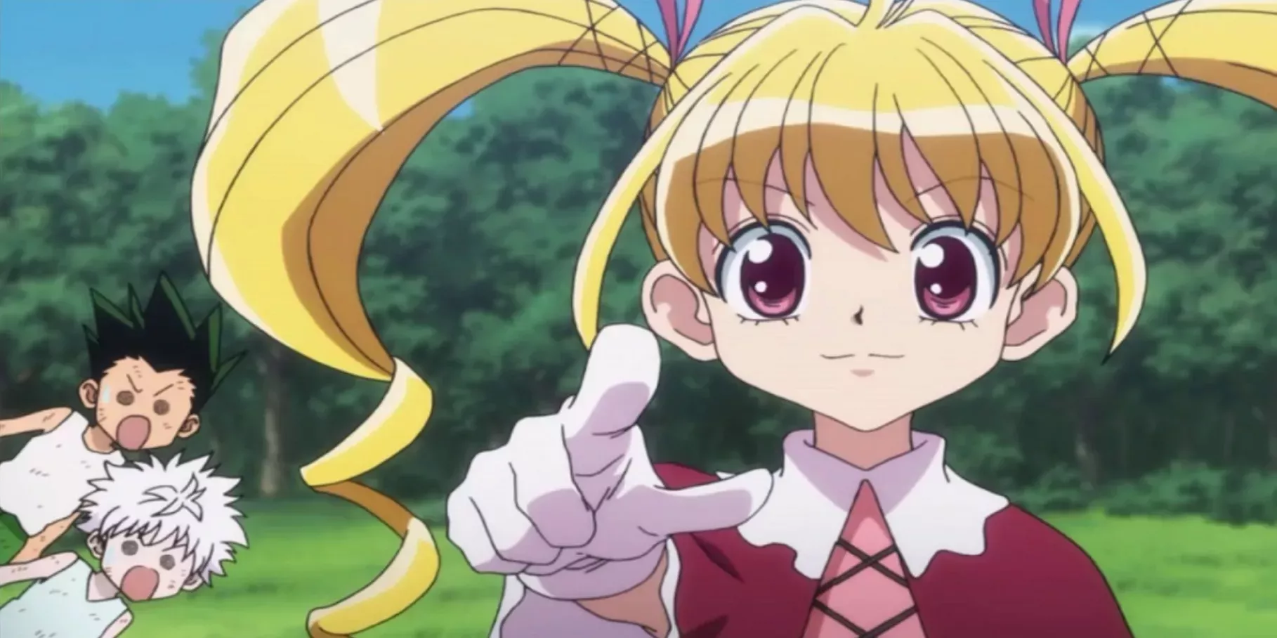 Además, se enfada mucho cuando alguien menciona su edad o la ignora en una conversación, y es entonces cuando coge una gran rabieta. Sin embargo, tiene un talón de Aquiles. Si alguien le hace un cumplido sobre su aspecto, como cuando Kurapika le dijo que parecía una princesa, se convierte en una persona amable y persuasiva.