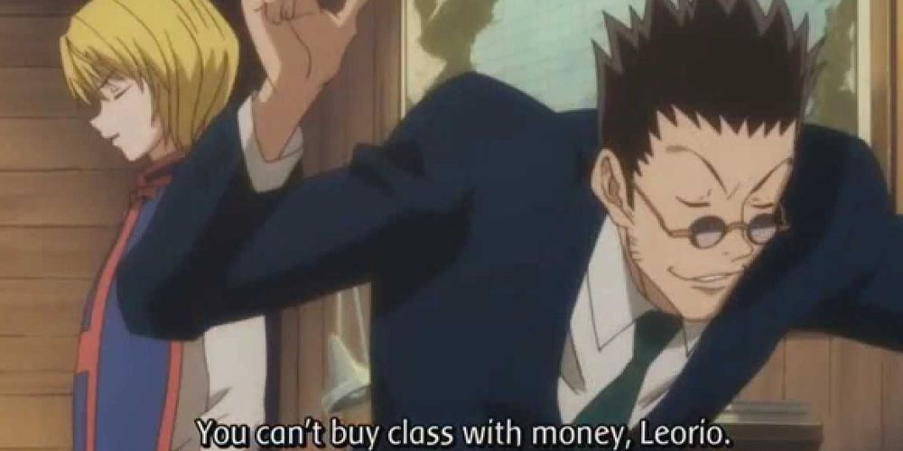 Leorio tiene una de las personalidades más atractivas del anime, pero necesita aprender a estar callado. Los héroes casi reprueban la fase preliminar del examen porque no dejaba de quejarse de la pregunta que se les hacía.