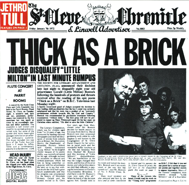 Pues, por si no fuera poco para los fans, ahora Ian Anderson ha anunciado que habrá una segunda parte del álbum, y que verá la luz el próximo 2 de abril. 'Thick as a brick' es un álbum conceptual en el que las letras están supuestamente basadas en un poema escrito por el personaje ficticio Gerald Bostock, un niño de ocho años, así que su secuela tratará de los múltiples caminos que el joven podría haber tomado a lo largo de su vida.